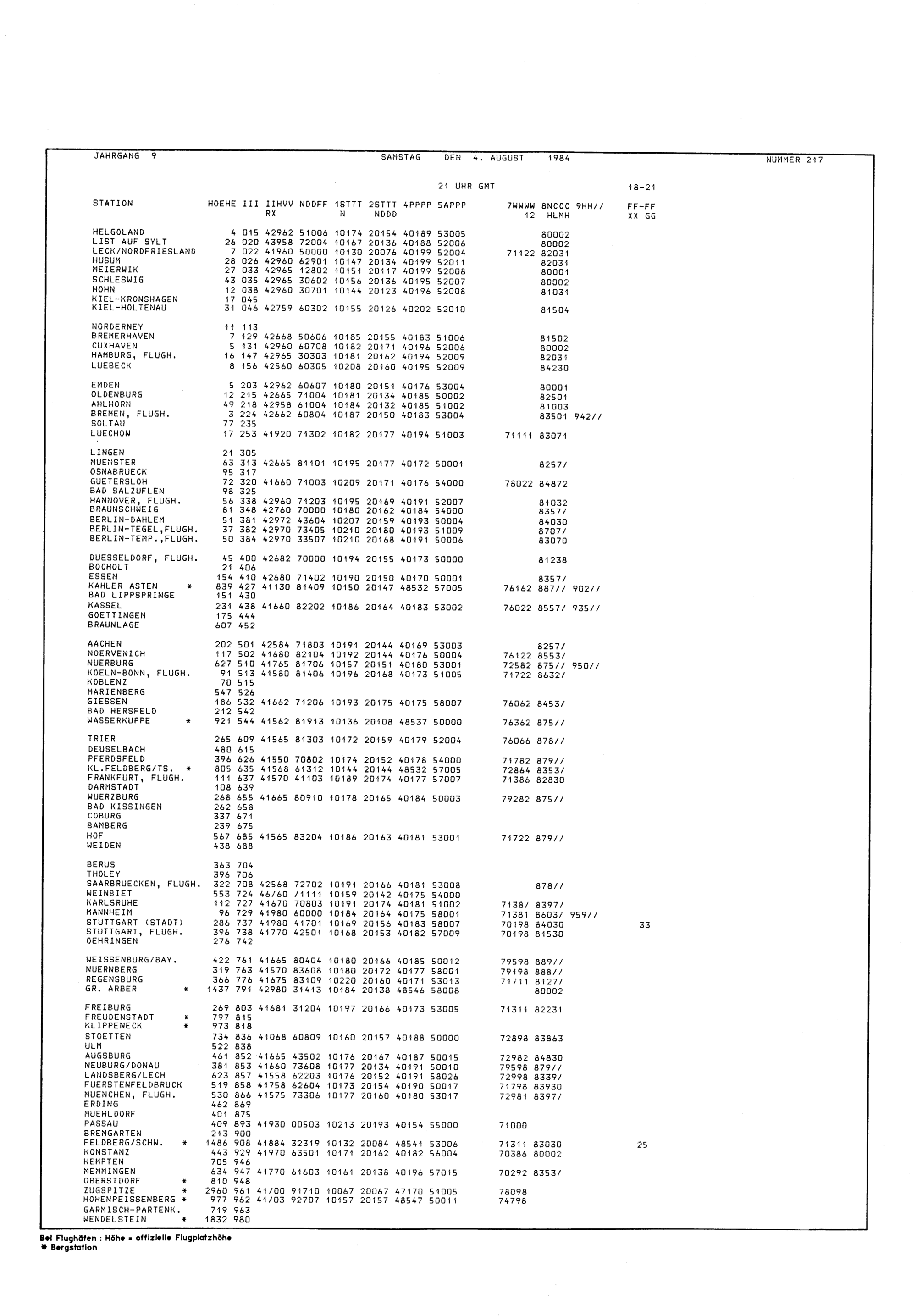 Europäischer Wetterbericht. Beilage 1, Bodenwettermeldungen. 1976-1994