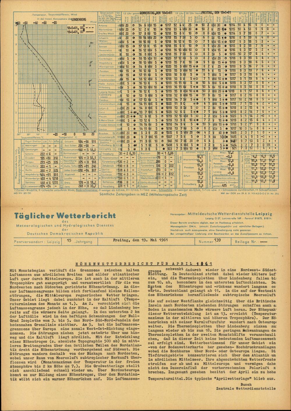 Täglicher Wetterbericht des Meteorologischen und Hydrologischen Dienstes der Deutschen...