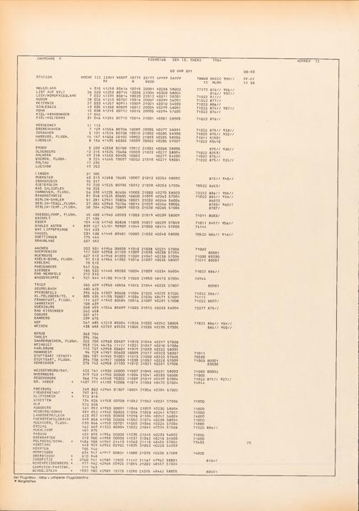 Europäischer Wetterbericht. Beilage 1, Bodenwettermeldungen. 1976-1994