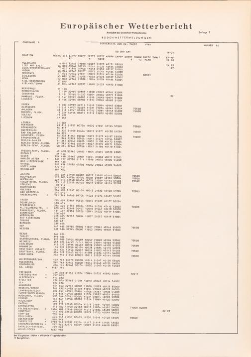 Europäischer Wetterbericht. Beilage 1, Bodenwettermeldungen. 1976-1994