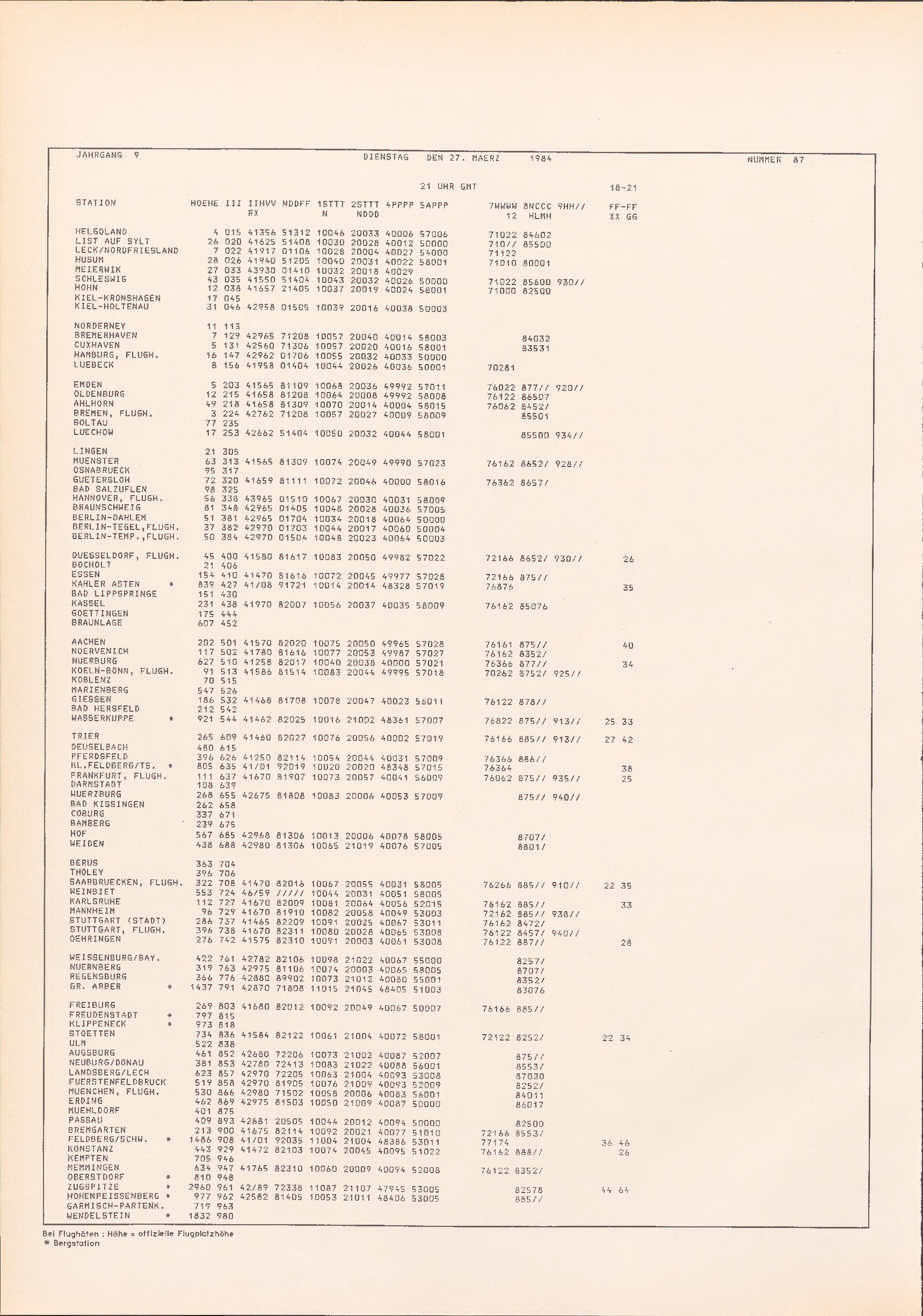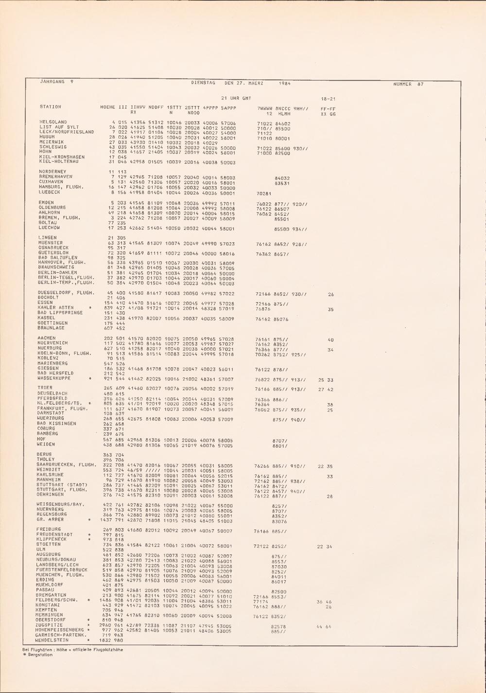 Europäischer Wetterbericht. Beilage 1, Bodenwettermeldungen. 1976-1994