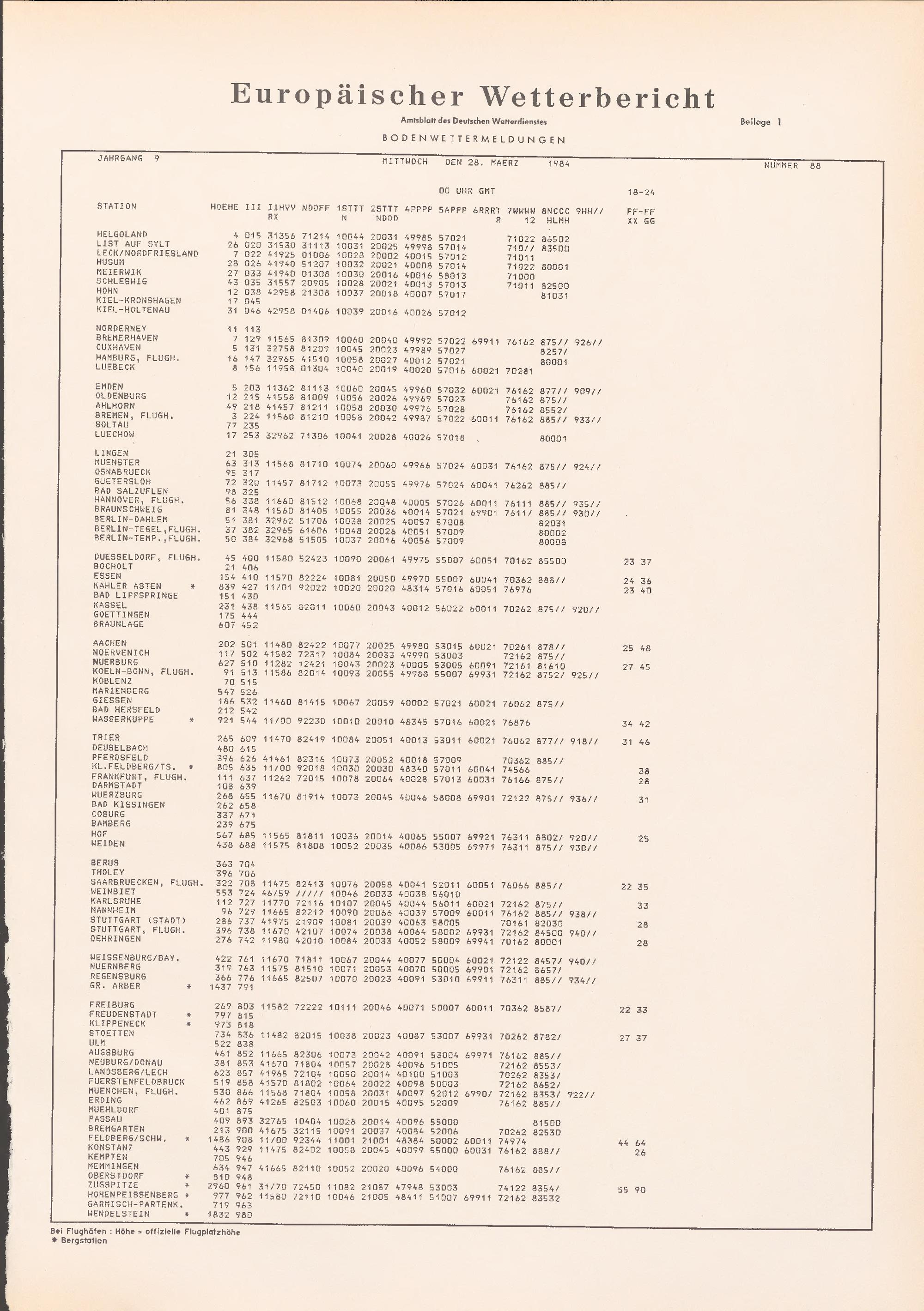 Europäischer Wetterbericht. Beilage 1, Bodenwettermeldungen. 1976-1994
