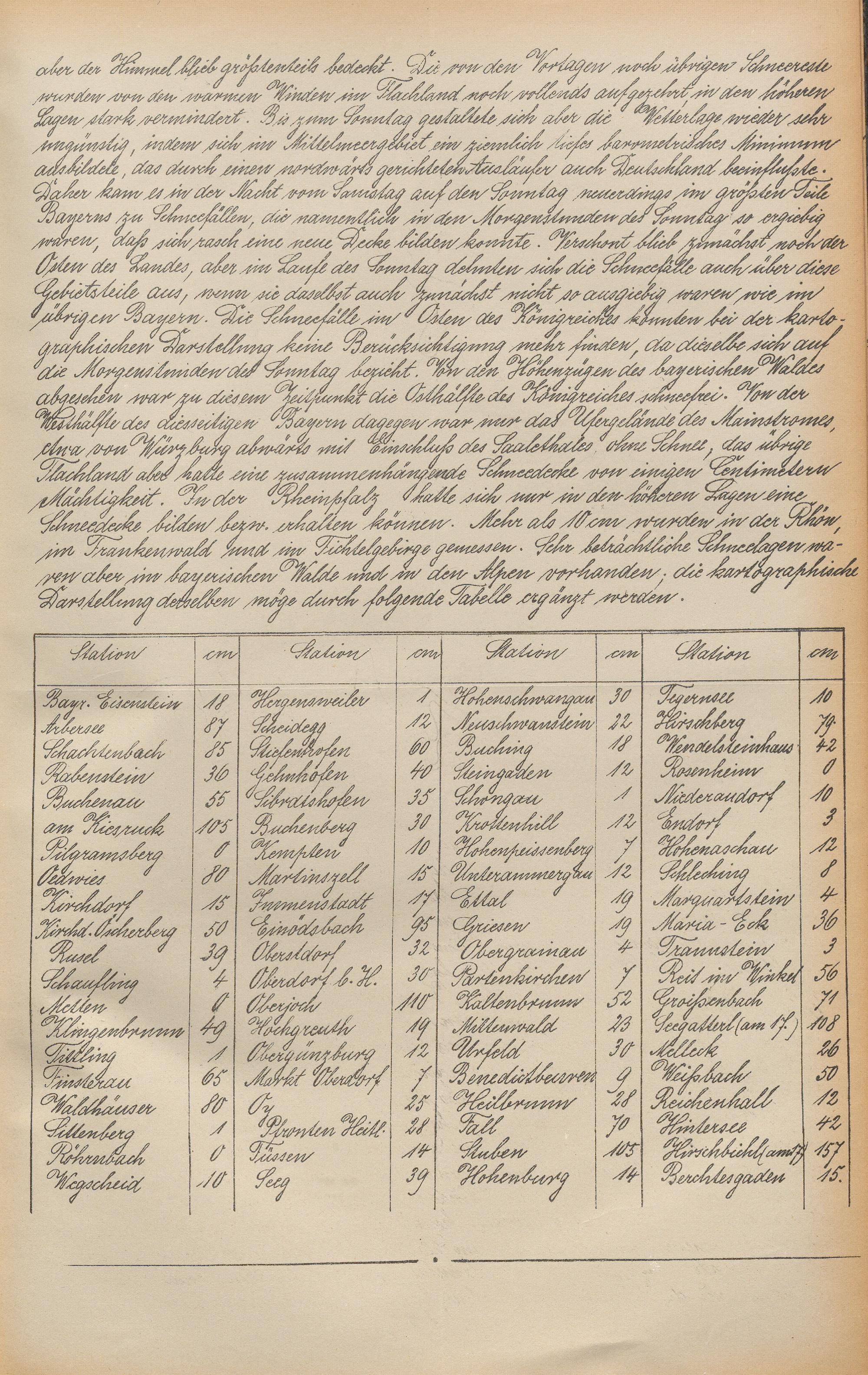 Die Schneehöhen im Königreiche Bayern