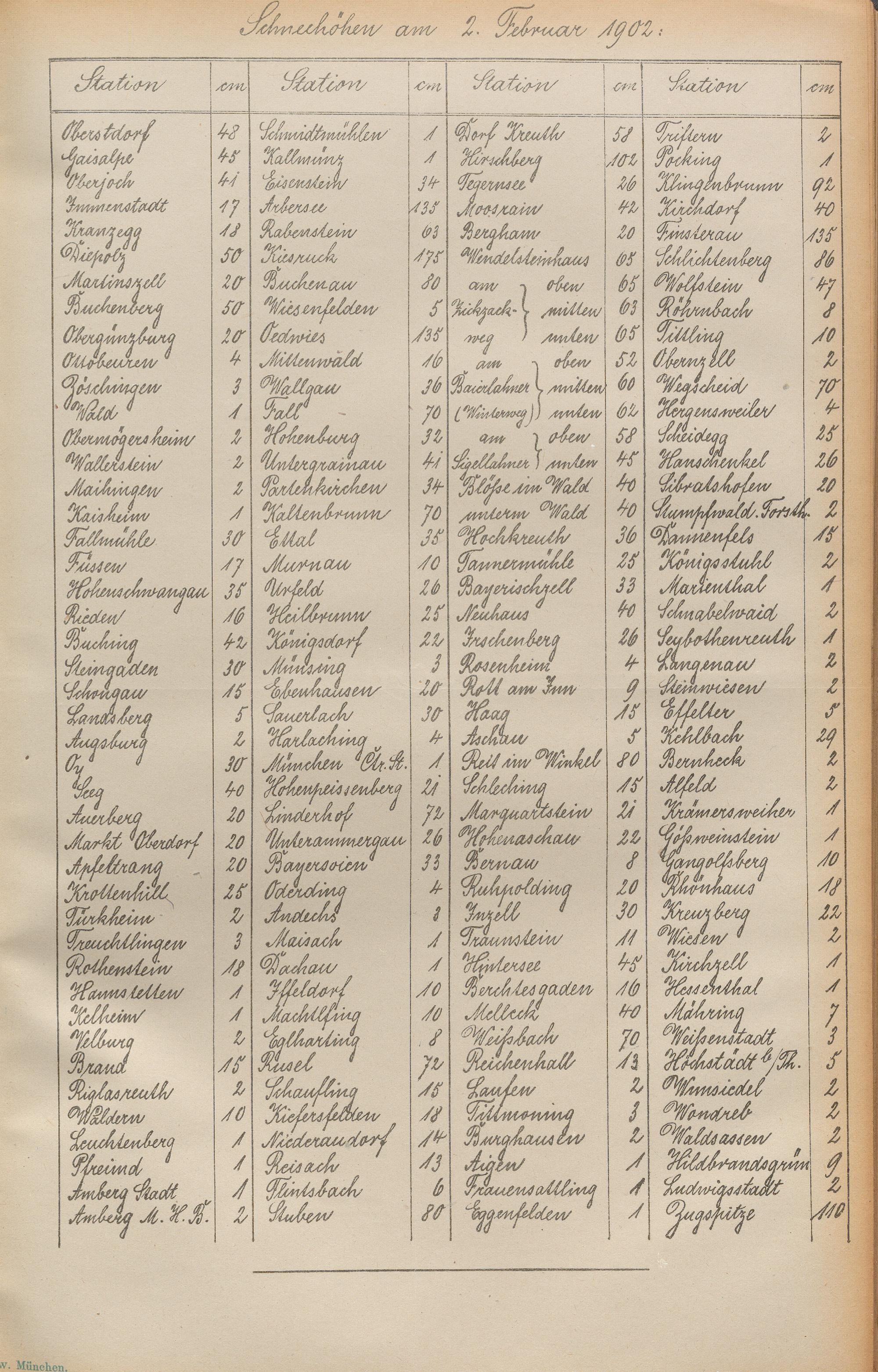 Die Schneehöhen im Königreiche Bayern