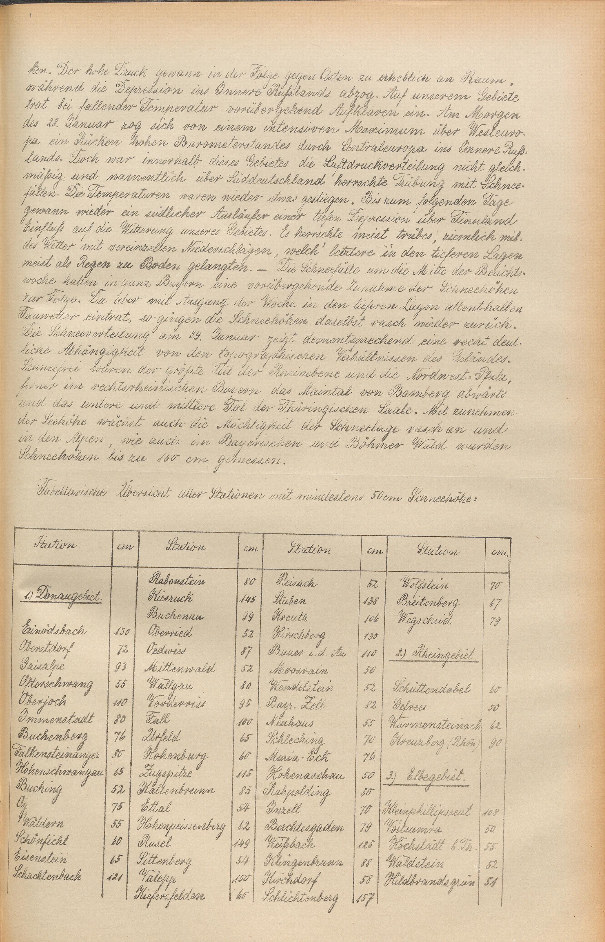 Die Schneehöhen im Königreiche Bayern