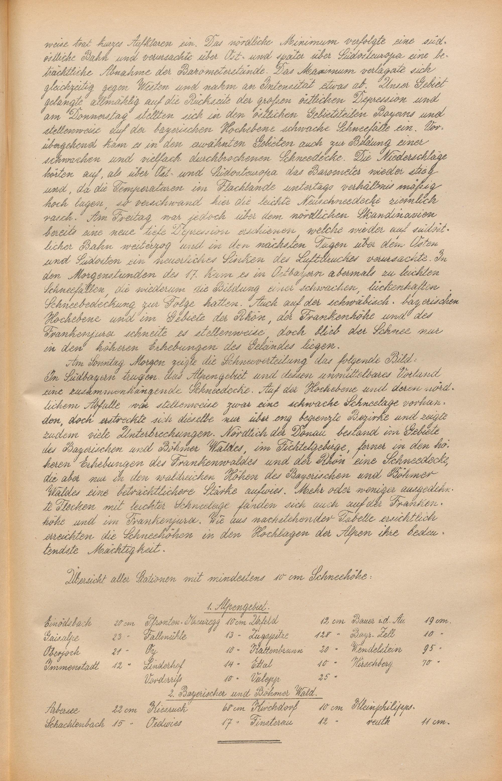 Die Schneehöhen im Königreiche Bayern