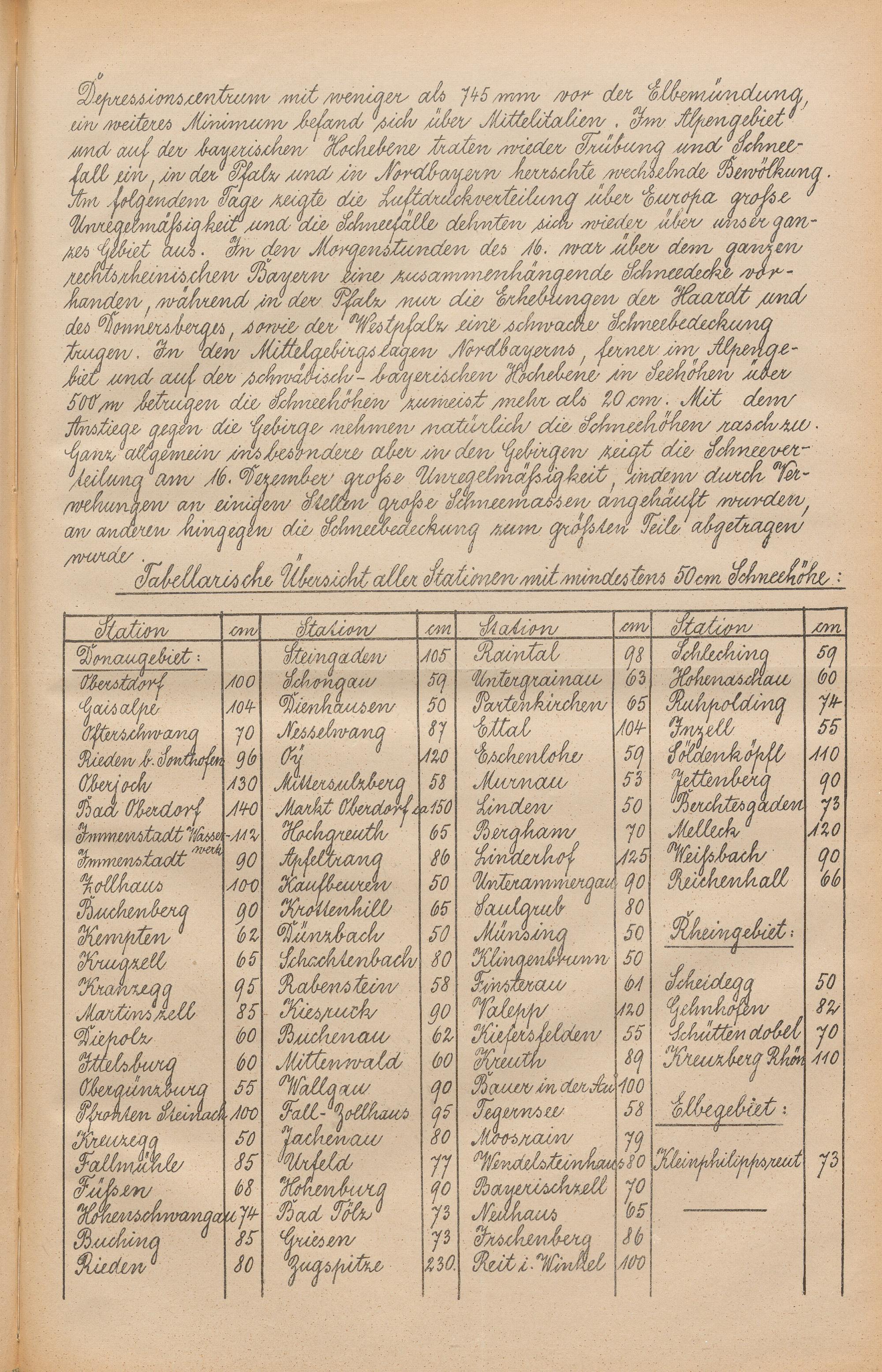 Die Schneehöhen im Königreiche Bayern