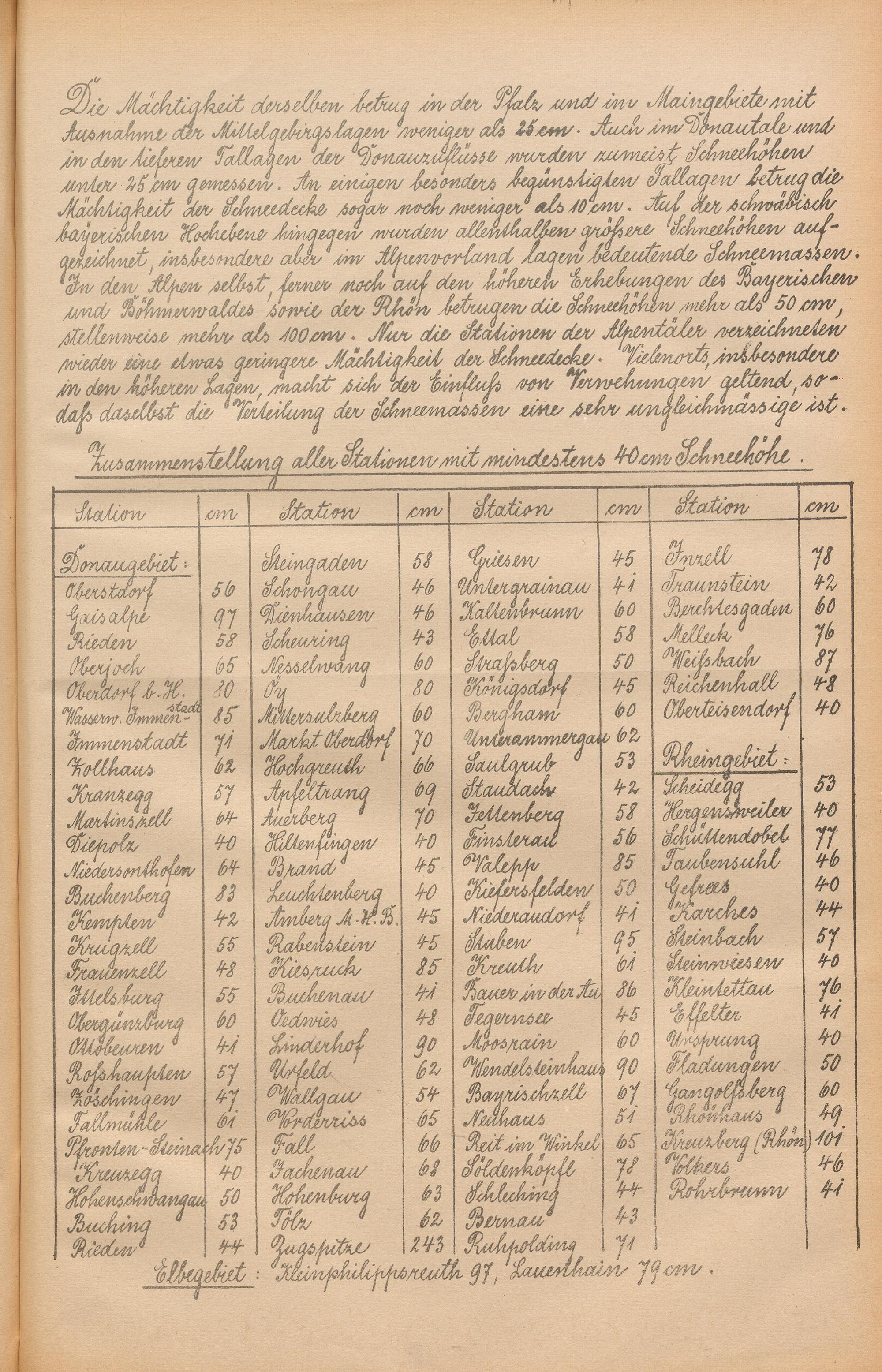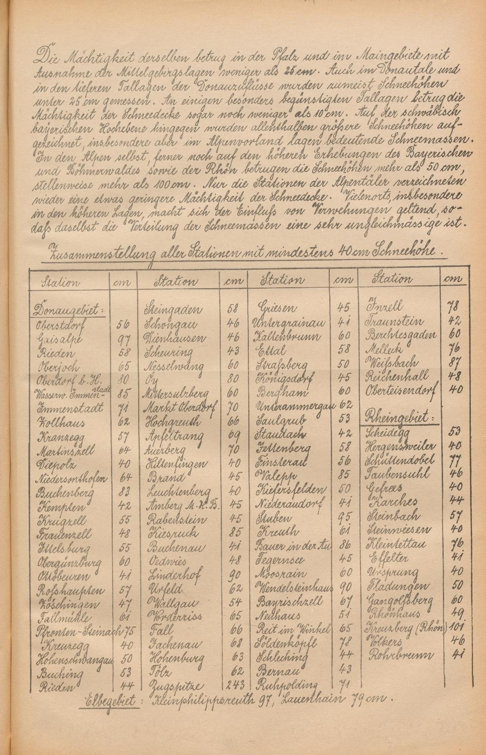 Die Schneehöhen im Königreiche Bayern