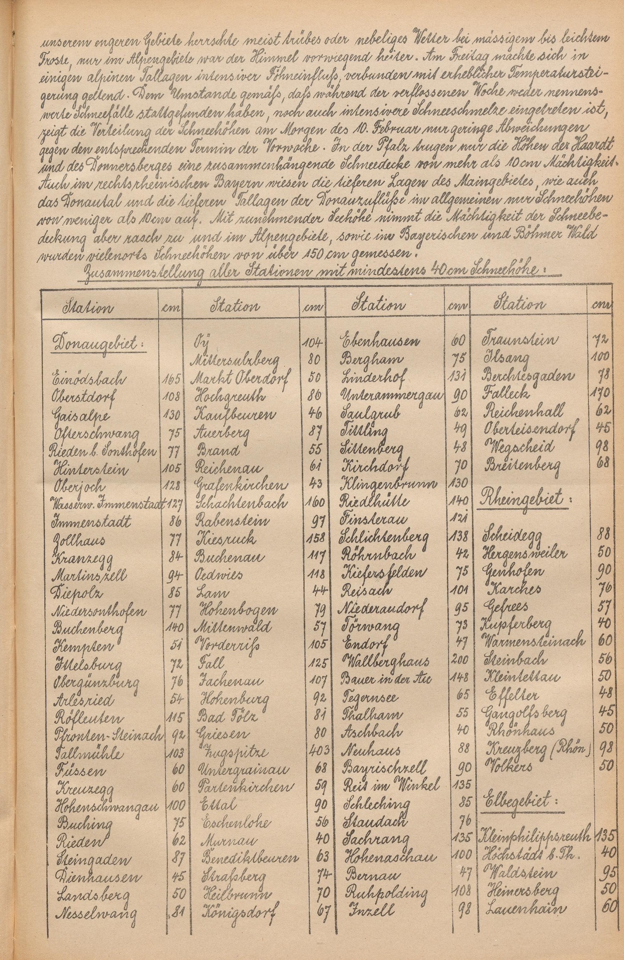 Die Schneehöhen im Königreiche Bayern