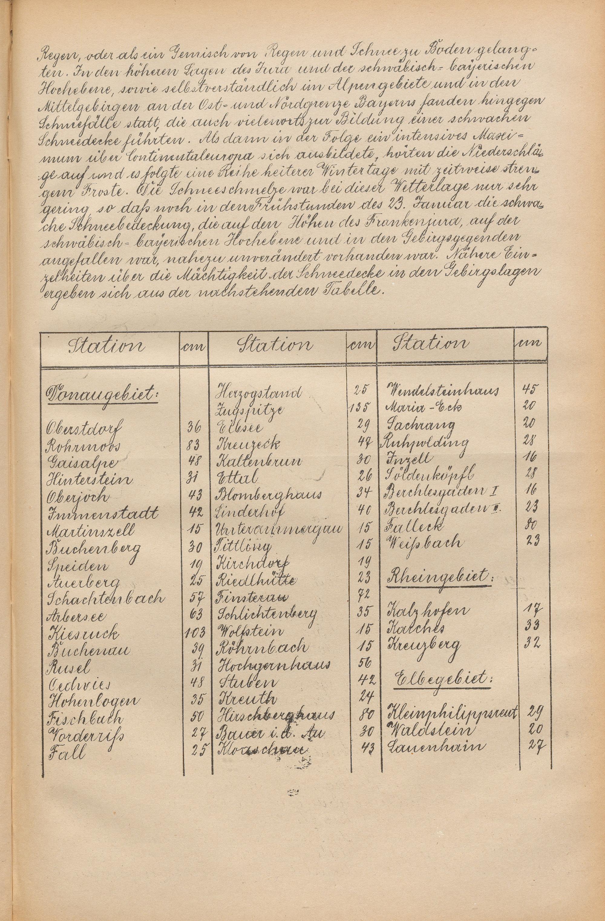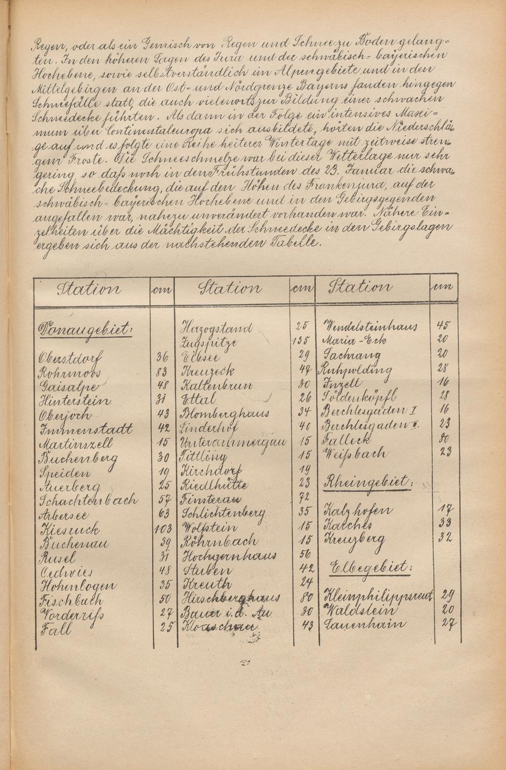 Die Schneehöhen im Königreiche Bayern