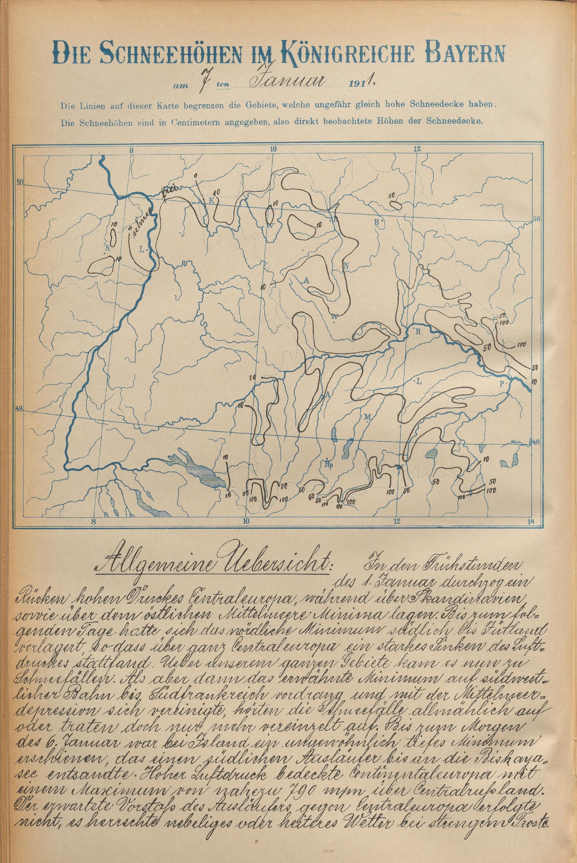 Die Schneehöhen im Königreiche Bayern