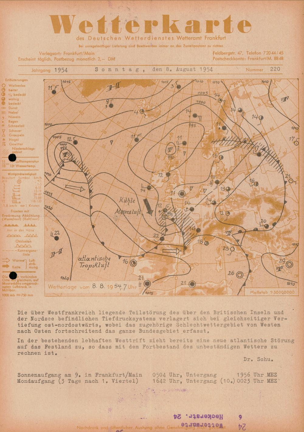 Wetterkarte des Deutschen Wetterdienstes, Wetteramt Frankfurt