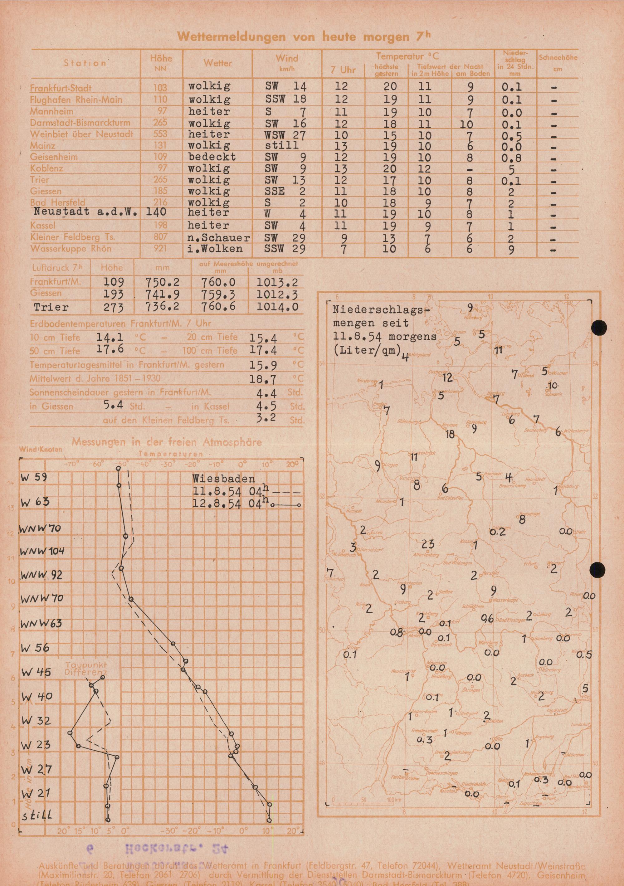 Wetterkarte des Deutschen Wetterdienstes, Wetteramt Frankfurt