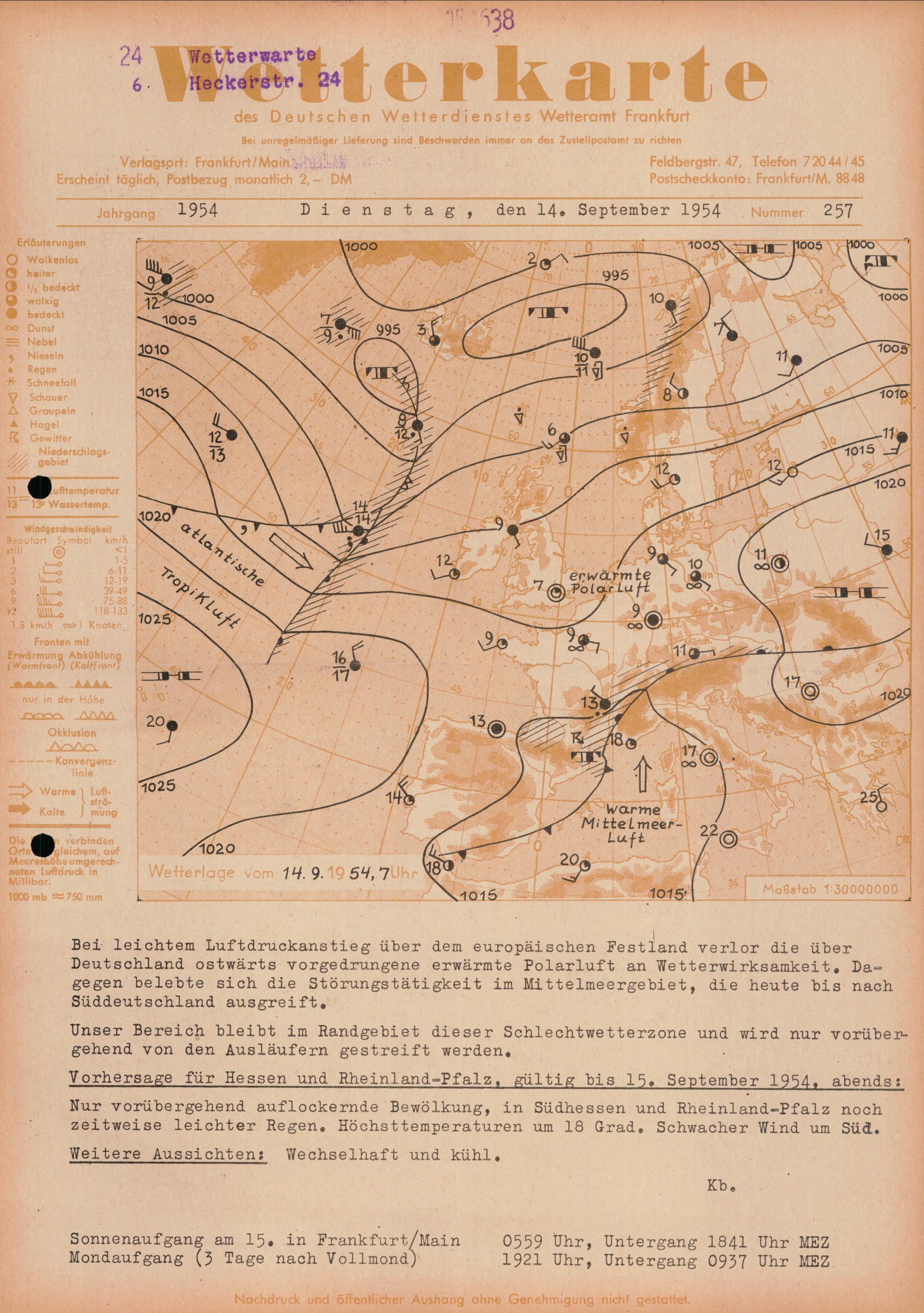Wetterkarte des Deutschen Wetterdienstes, Wetteramt Frankfurt