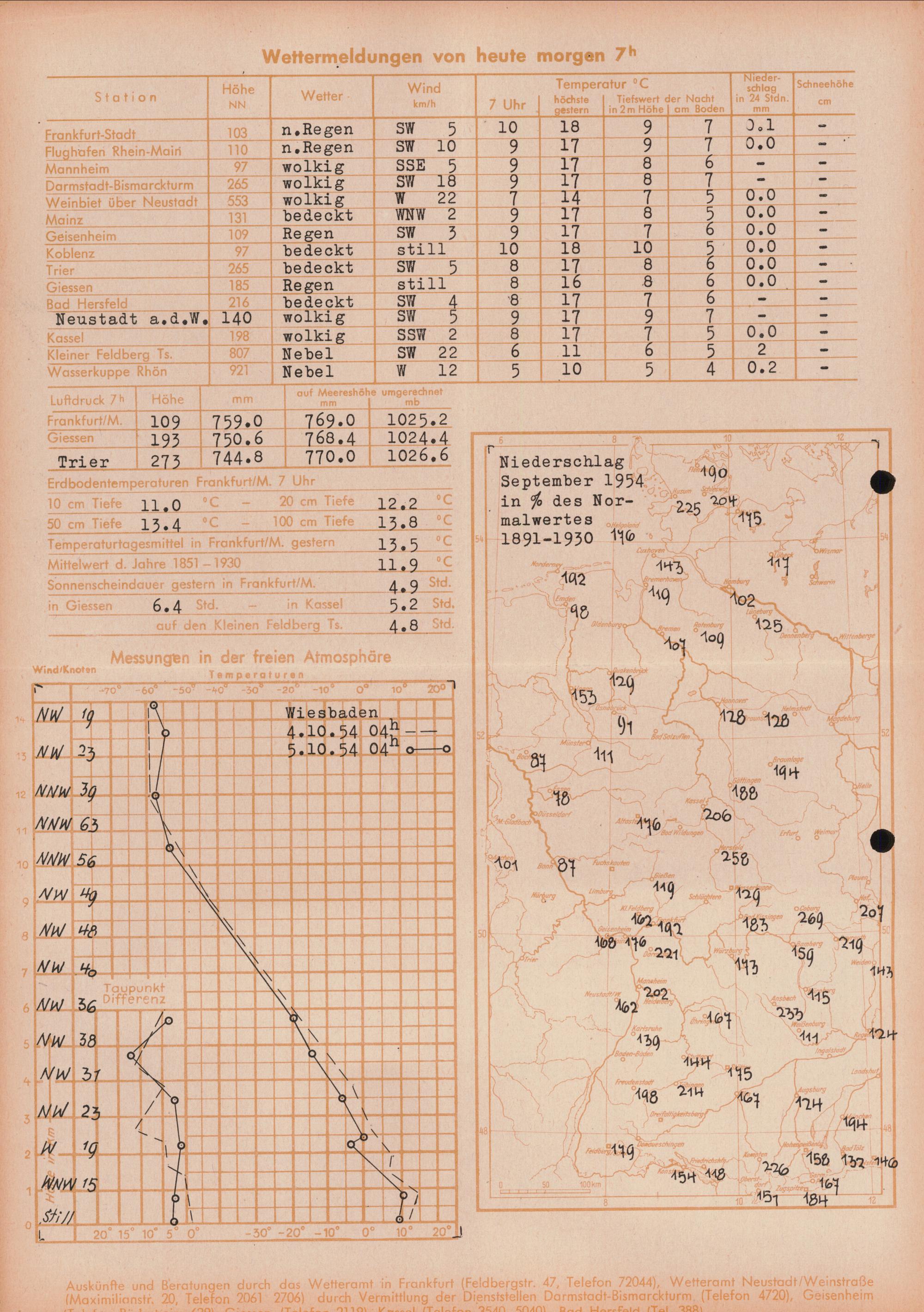 Wetterkarte des Deutschen Wetterdienstes, Wetteramt Frankfurt