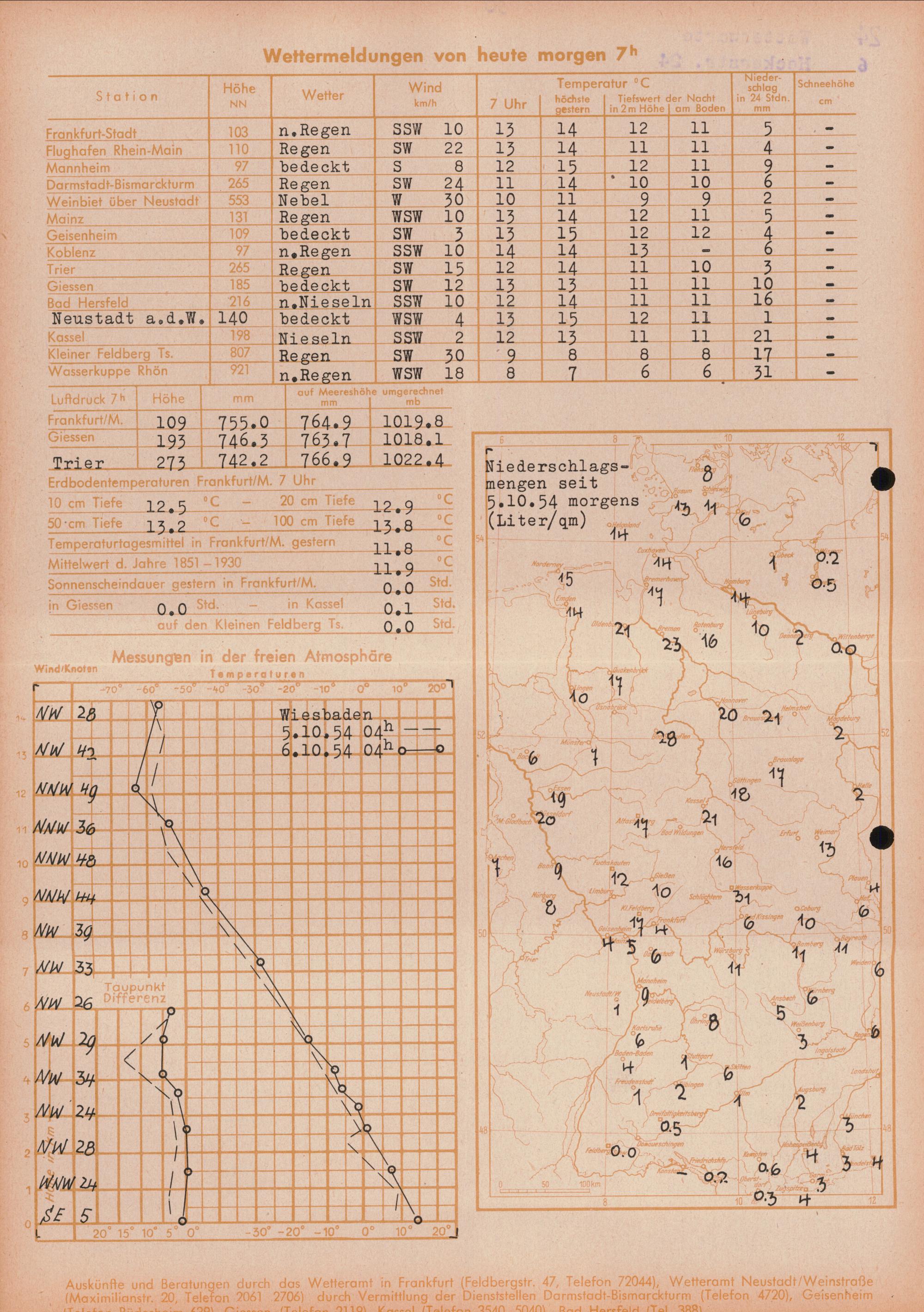 Wetterkarte des Deutschen Wetterdienstes, Wetteramt Frankfurt