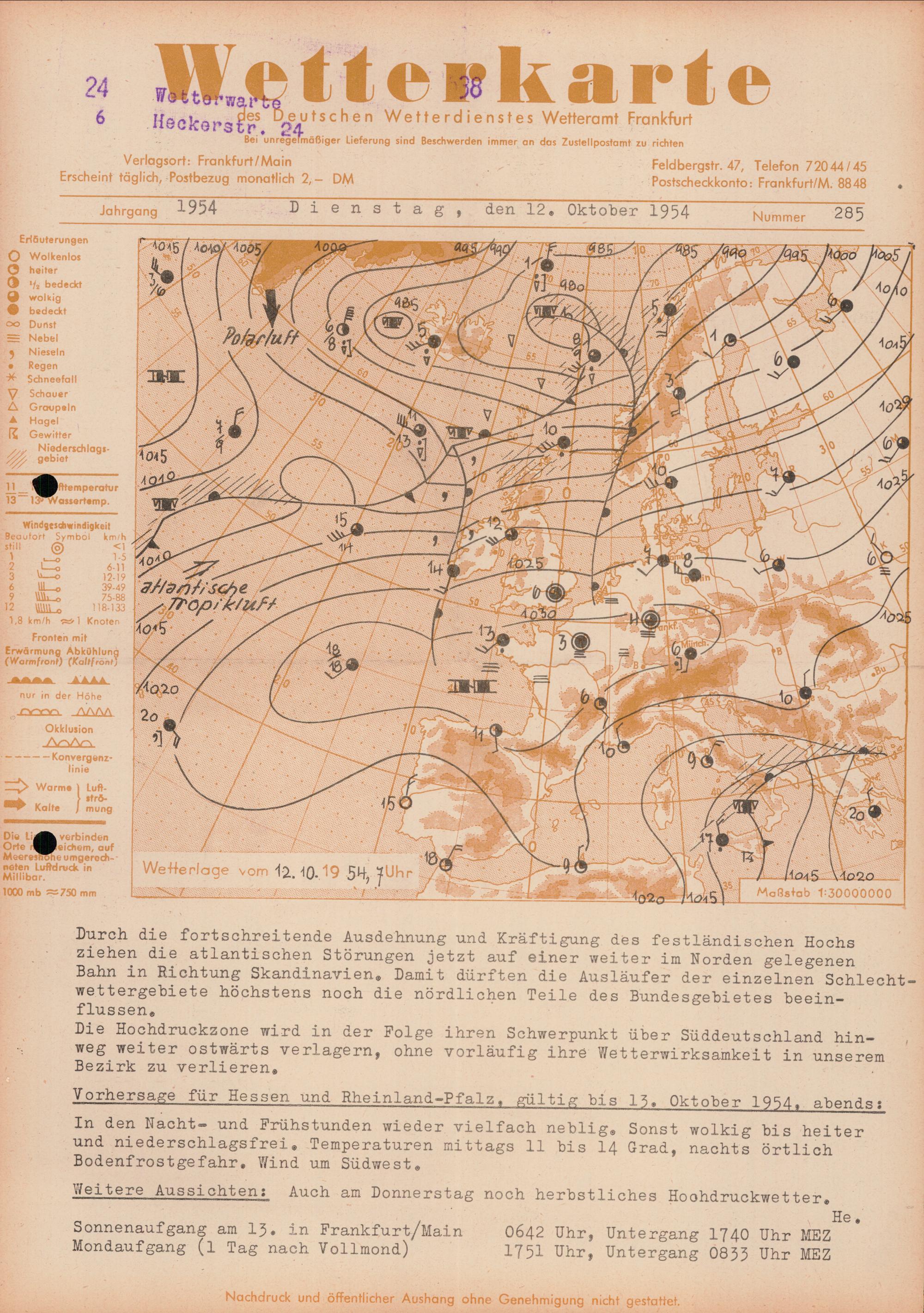 Wetterkarte des Deutschen Wetterdienstes, Wetteramt Frankfurt