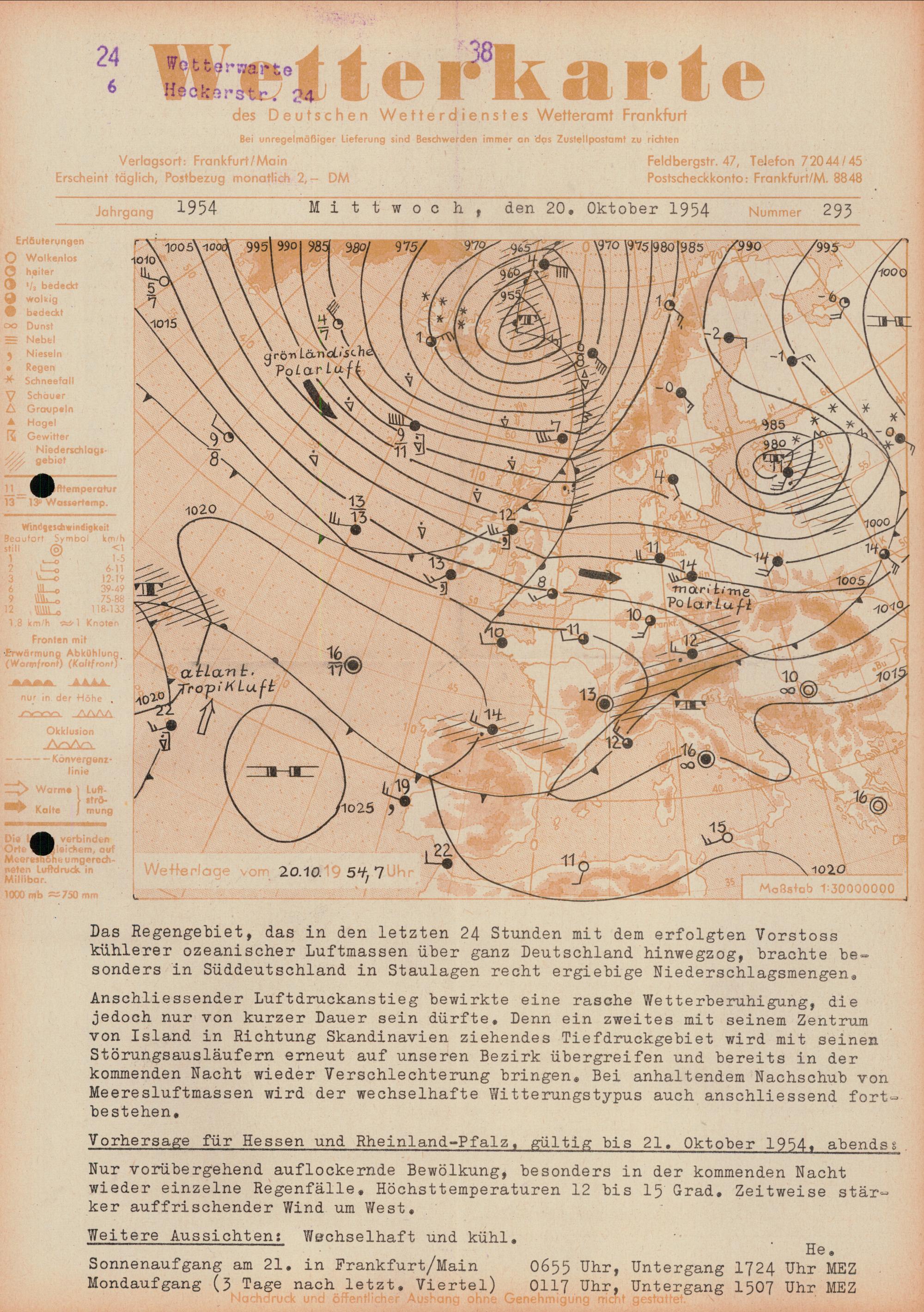 Wetterkarte des Deutschen Wetterdienstes, Wetteramt Frankfurt