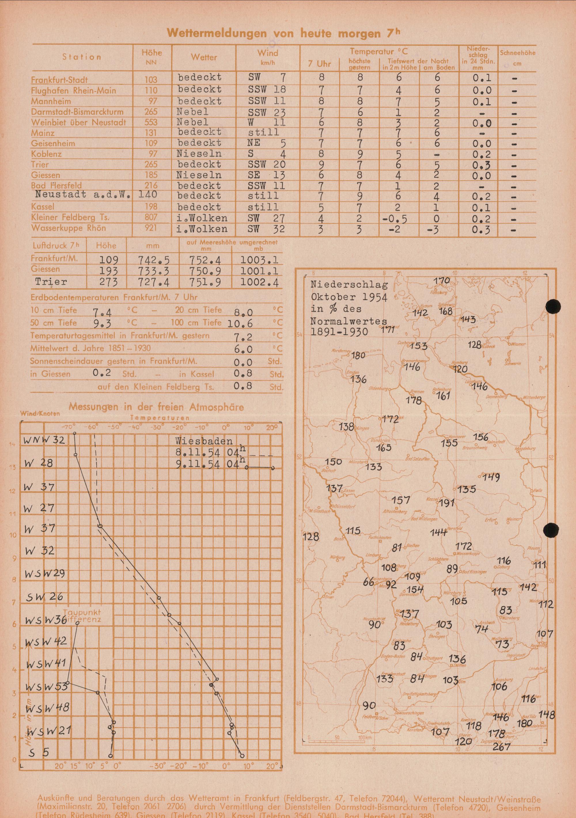 Wetterkarte des Deutschen Wetterdienstes, Wetteramt Frankfurt