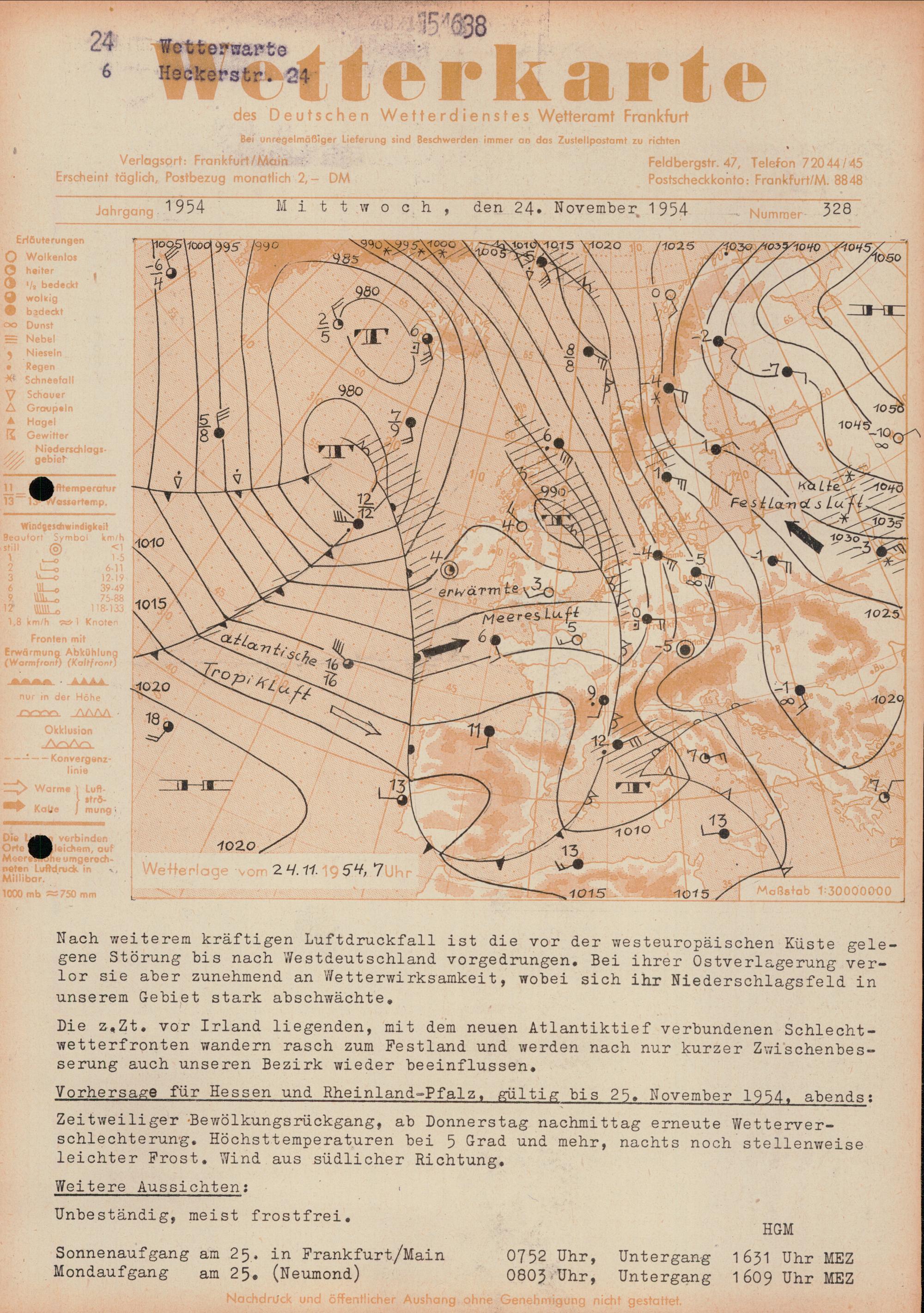 Wetterkarte des Deutschen Wetterdienstes, Wetteramt Frankfurt