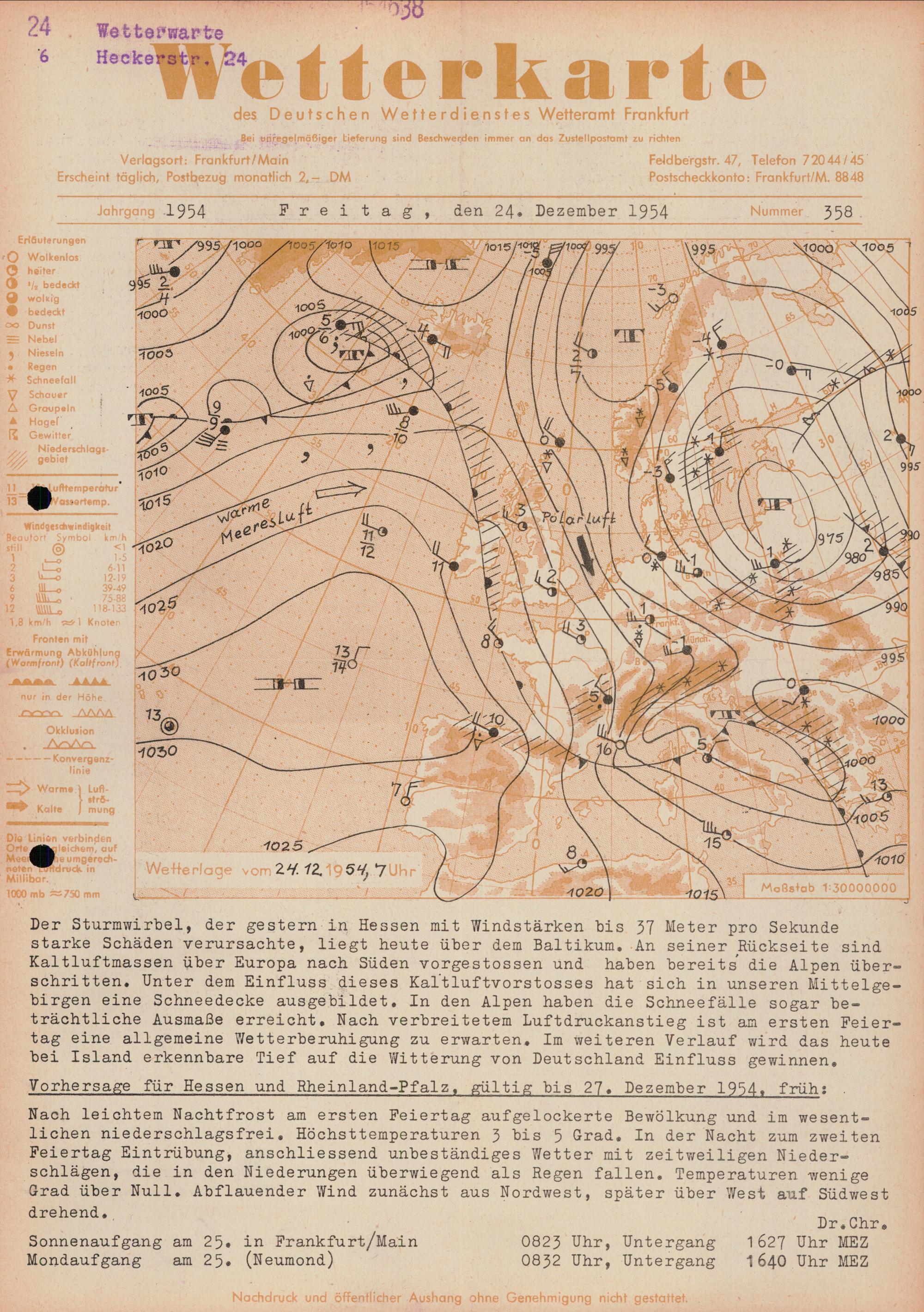 Wetterkarte des Deutschen Wetterdienstes, Wetteramt Frankfurt