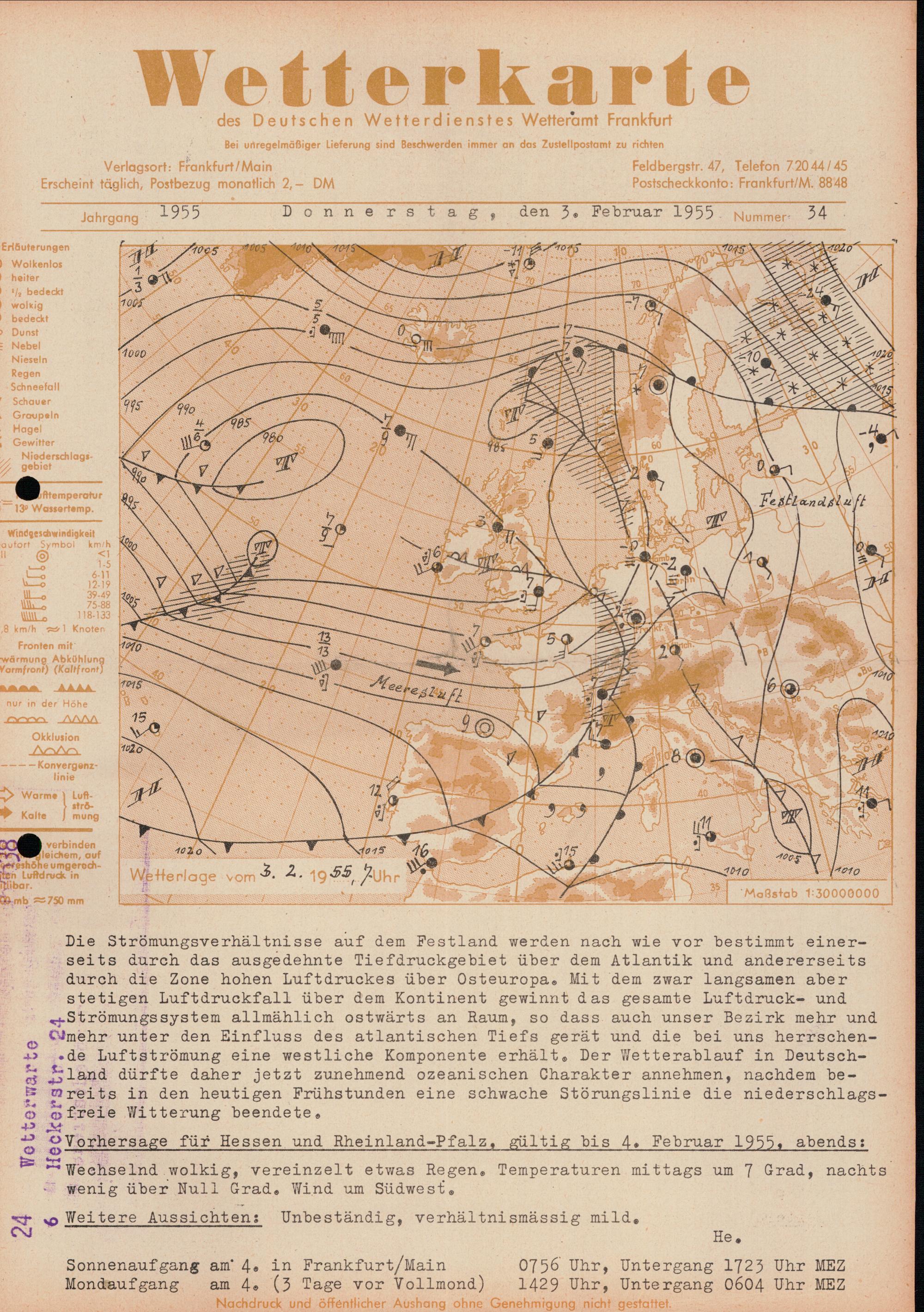 Wetterkarte des Deutschen Wetterdienstes, Wetteramt Frankfurt