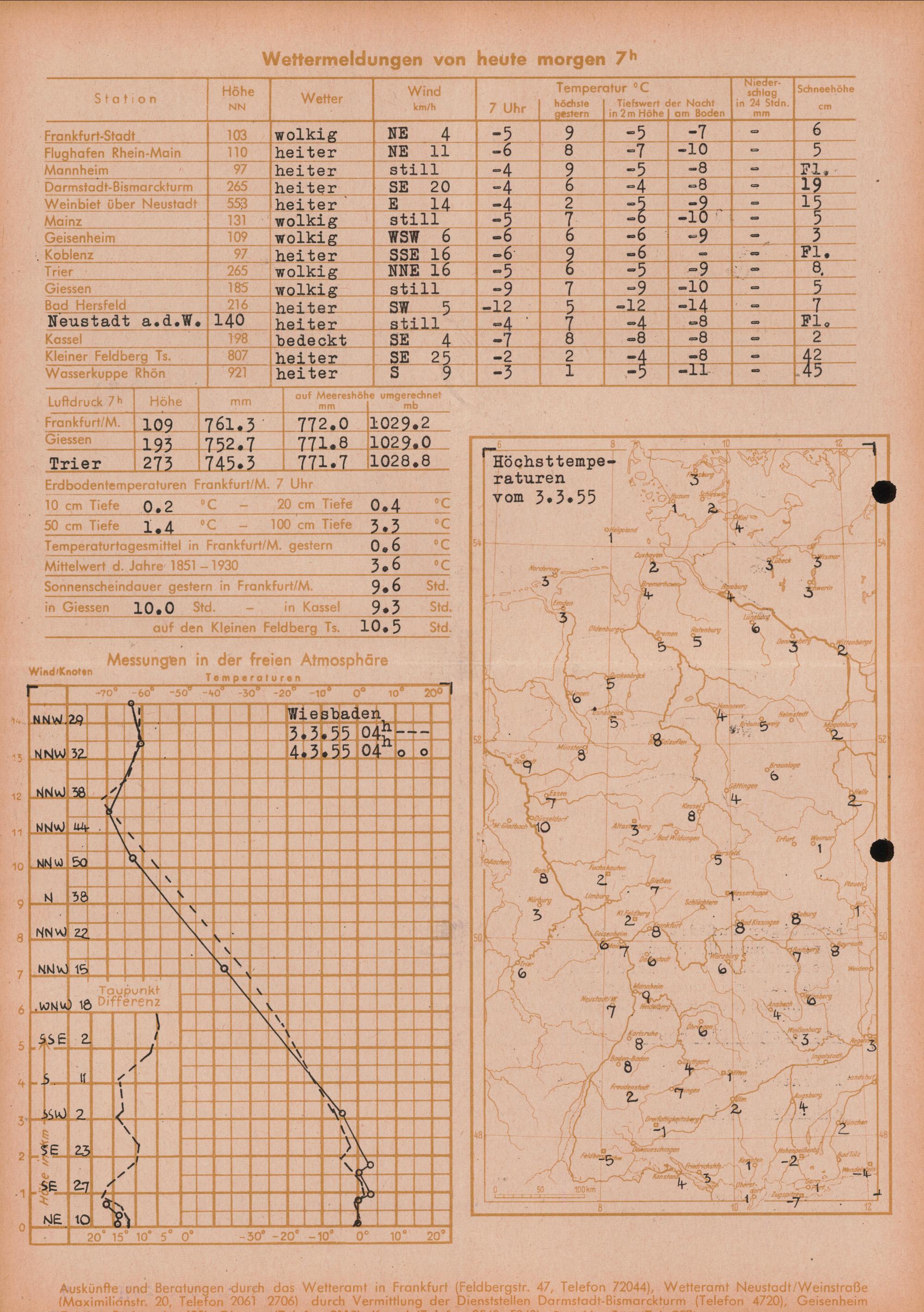 Wetterkarte des Deutschen Wetterdienstes, Wetteramt Frankfurt