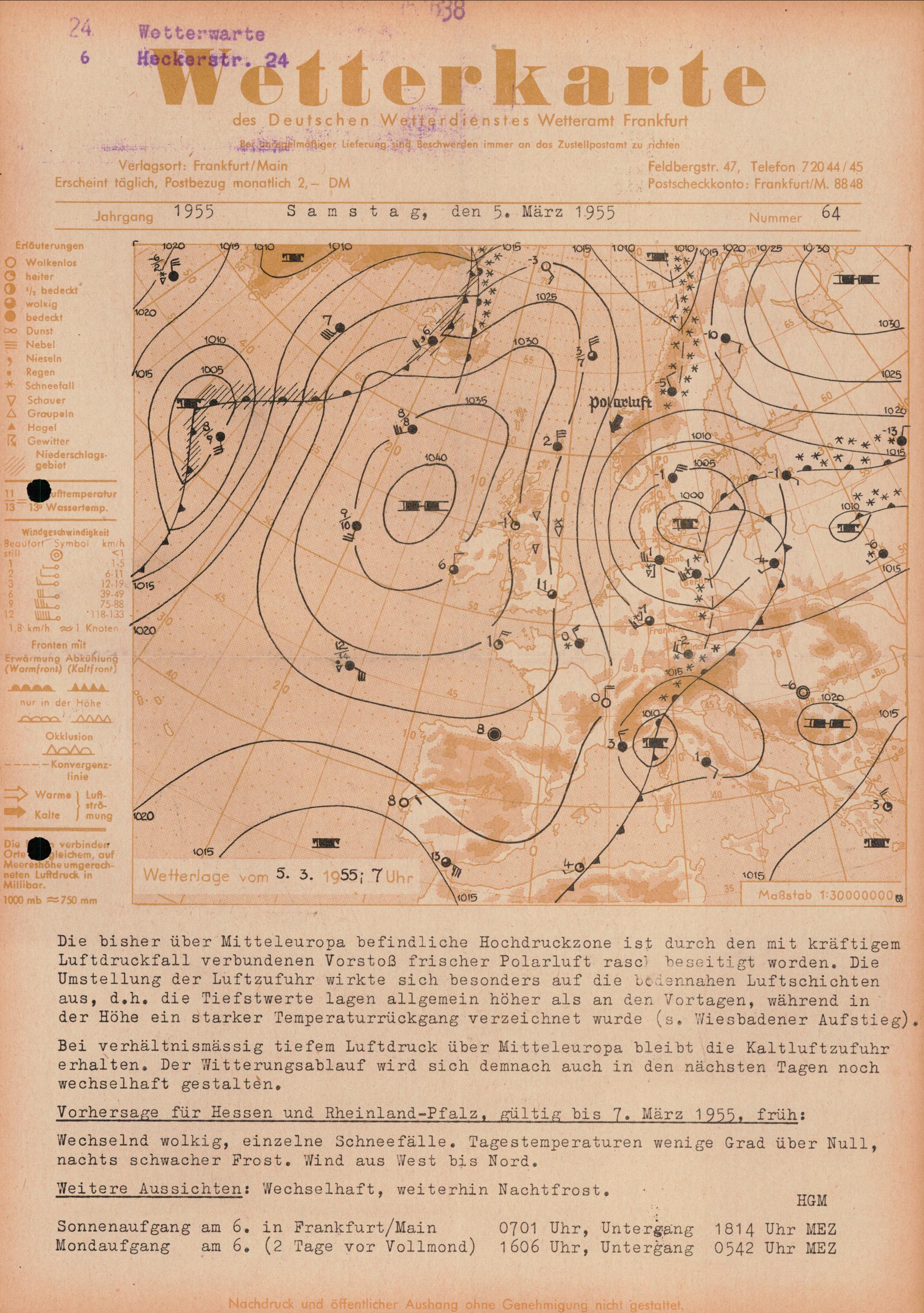 Wetterkarte des Deutschen Wetterdienstes, Wetteramt Frankfurt