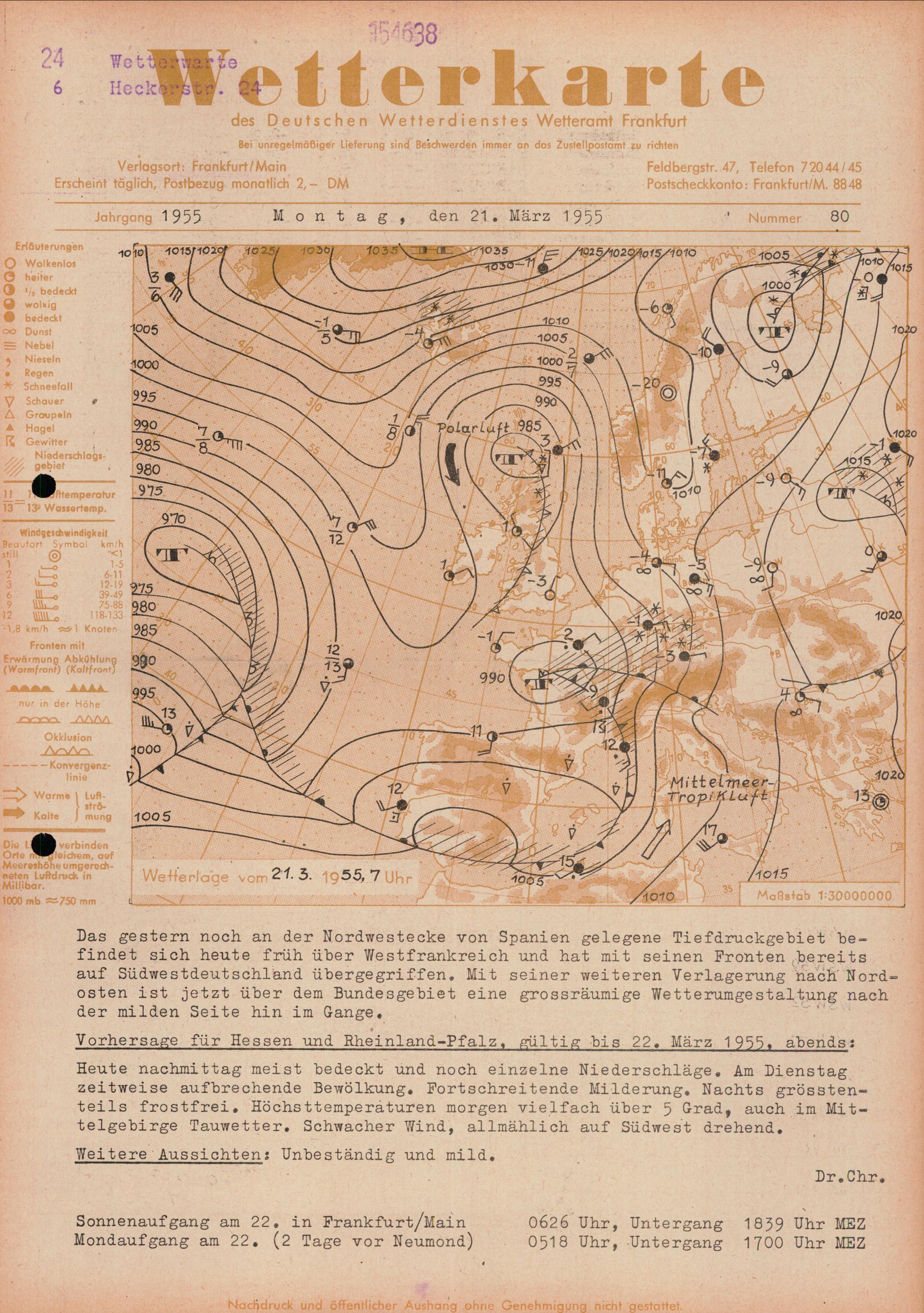 Wetterkarte des Deutschen Wetterdienstes, Wetteramt Frankfurt