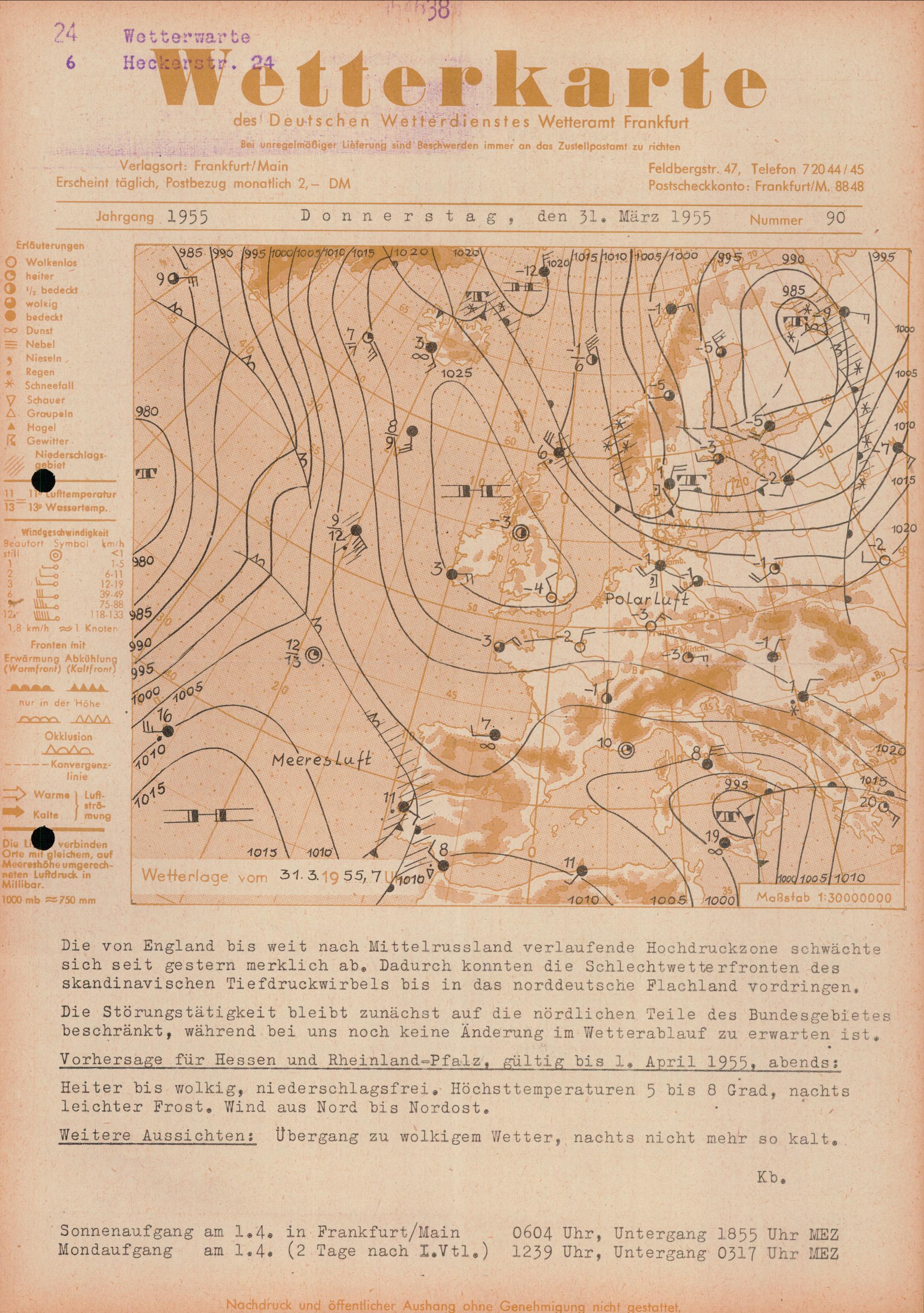 Wetterkarte des Deutschen Wetterdienstes, Wetteramt Frankfurt