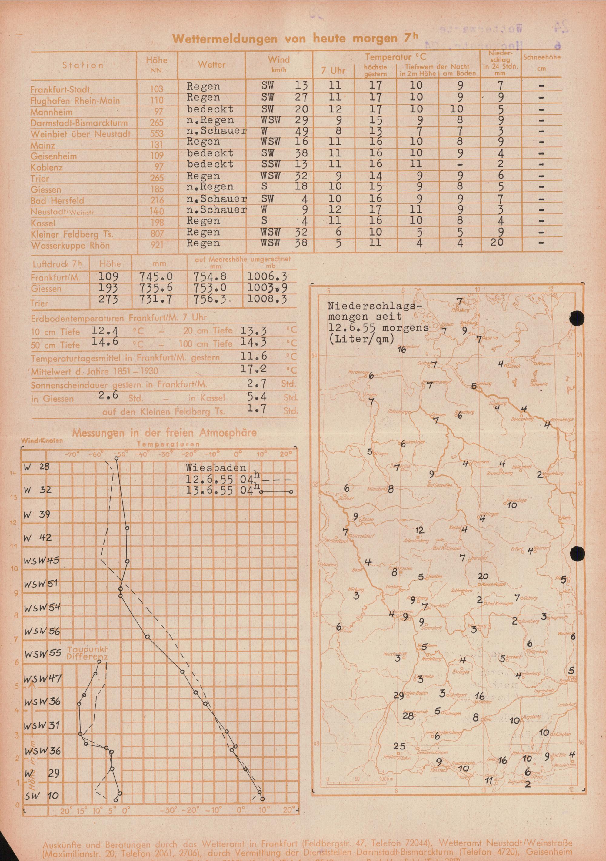 Wetterkarte des Deutschen Wetterdienstes, Wetteramt Frankfurt