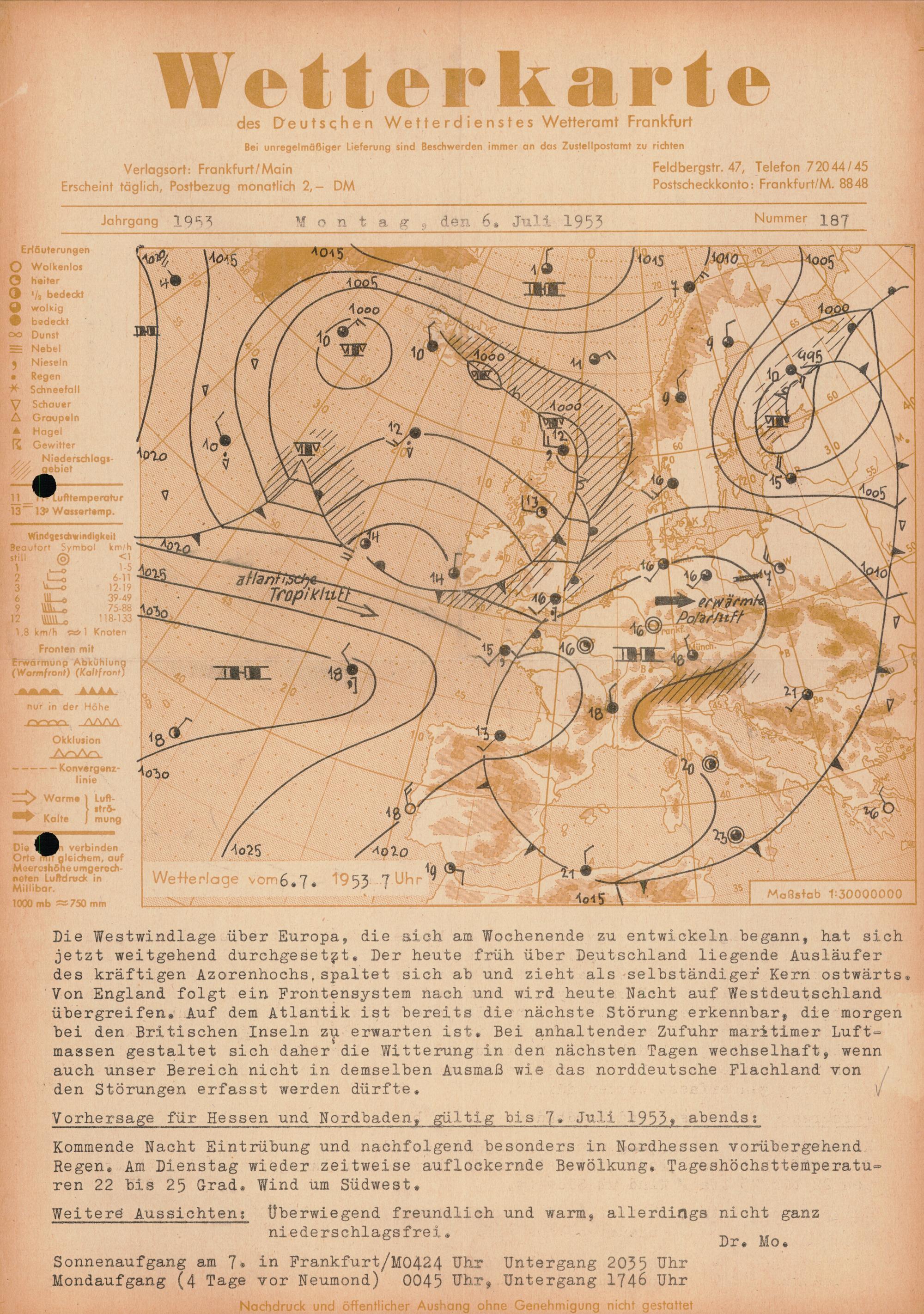 Wetterkarte des Deutschen Wetterdienstes, Wetteramt Frankfurt