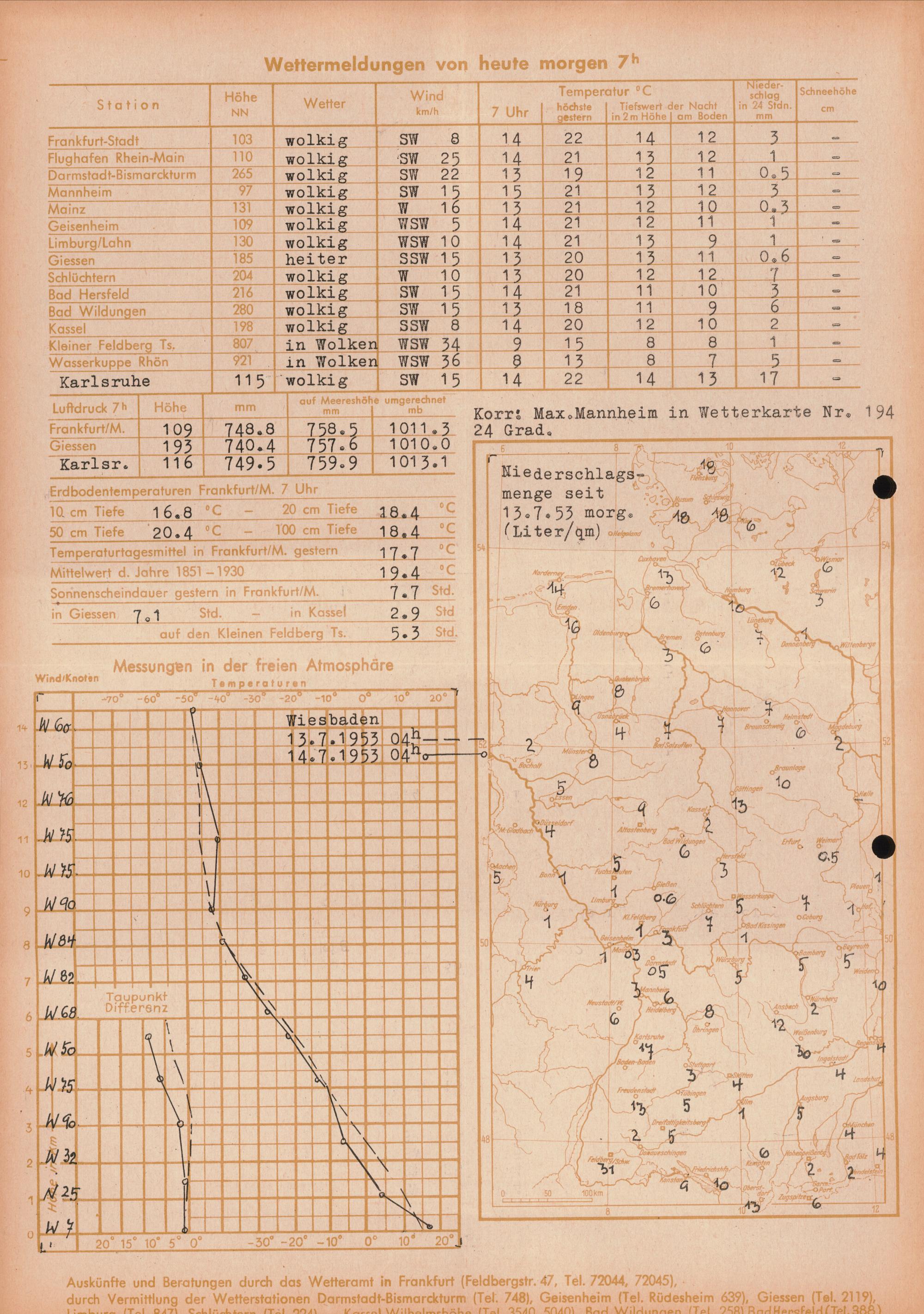 Wetterkarte des Deutschen Wetterdienstes, Wetteramt Frankfurt