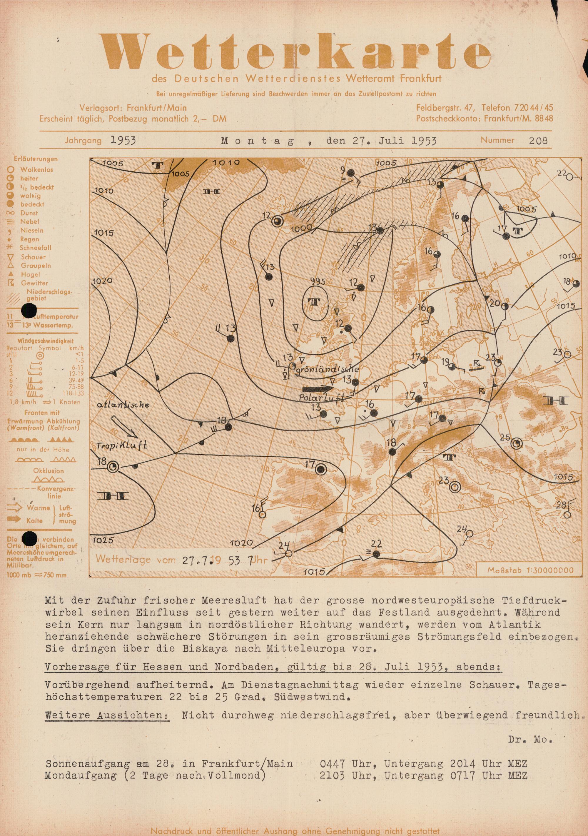 Wetterkarte des Deutschen Wetterdienstes, Wetteramt Frankfurt