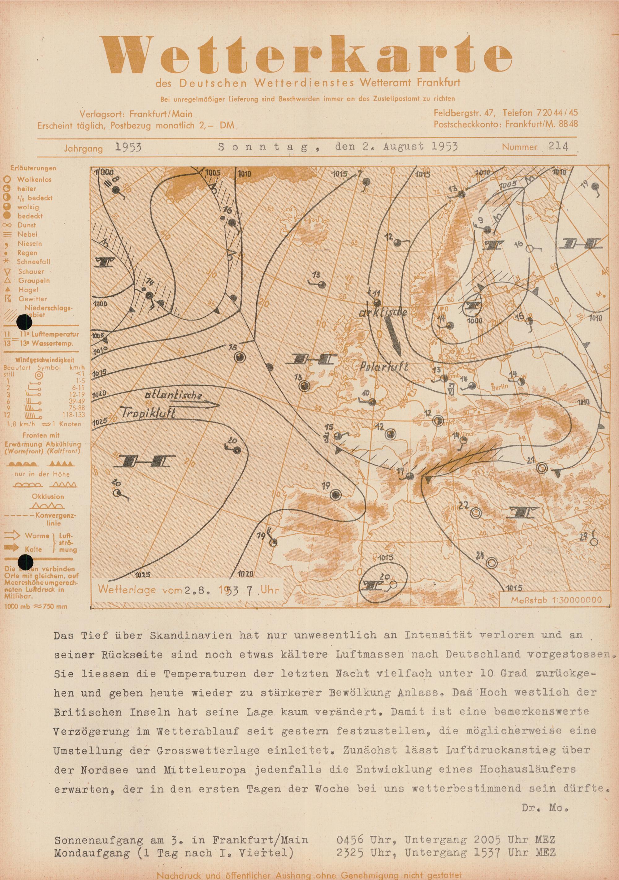 Wetterkarte des Deutschen Wetterdienstes, Wetteramt Frankfurt