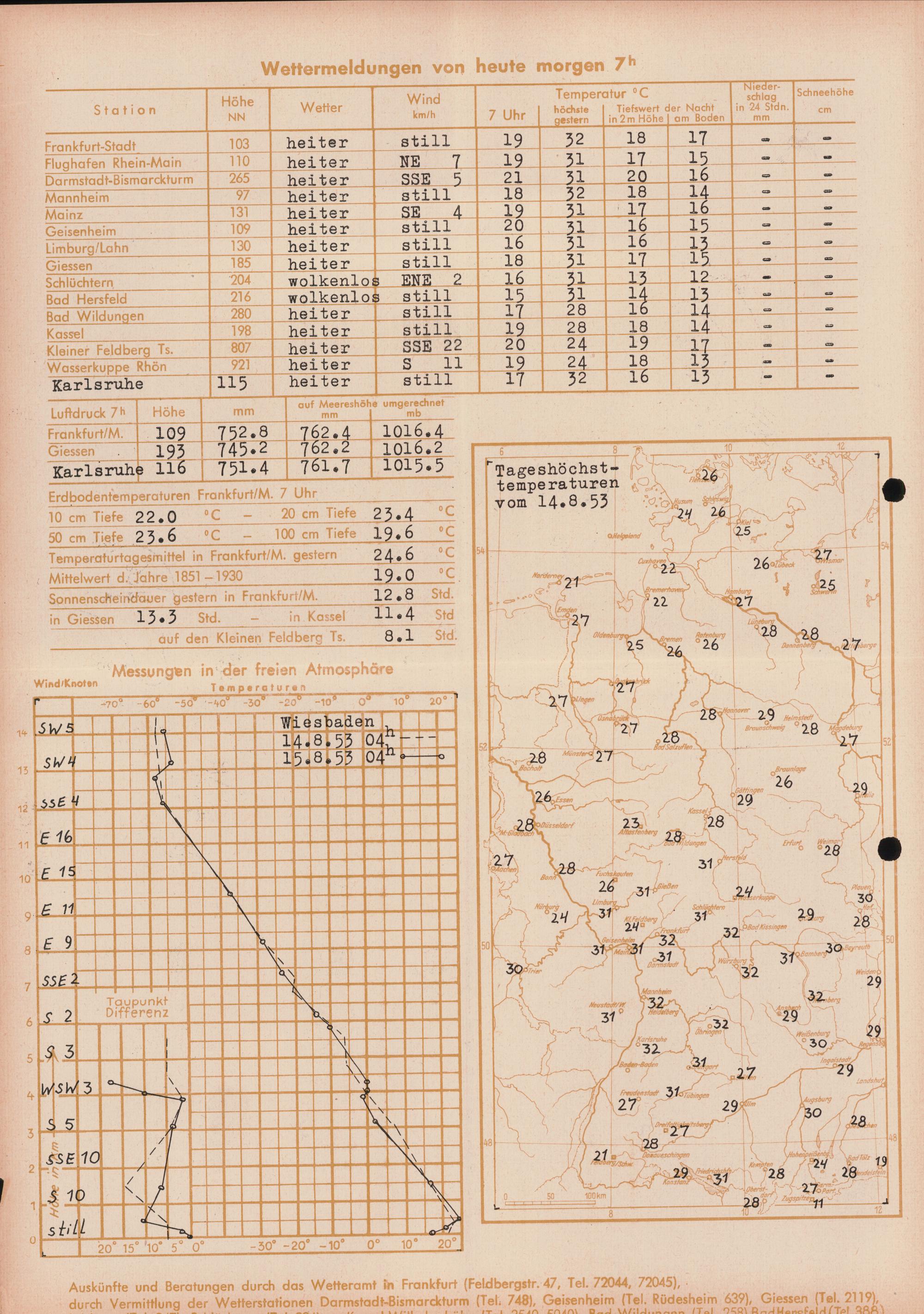 Wetterkarte des Deutschen Wetterdienstes, Wetteramt Frankfurt