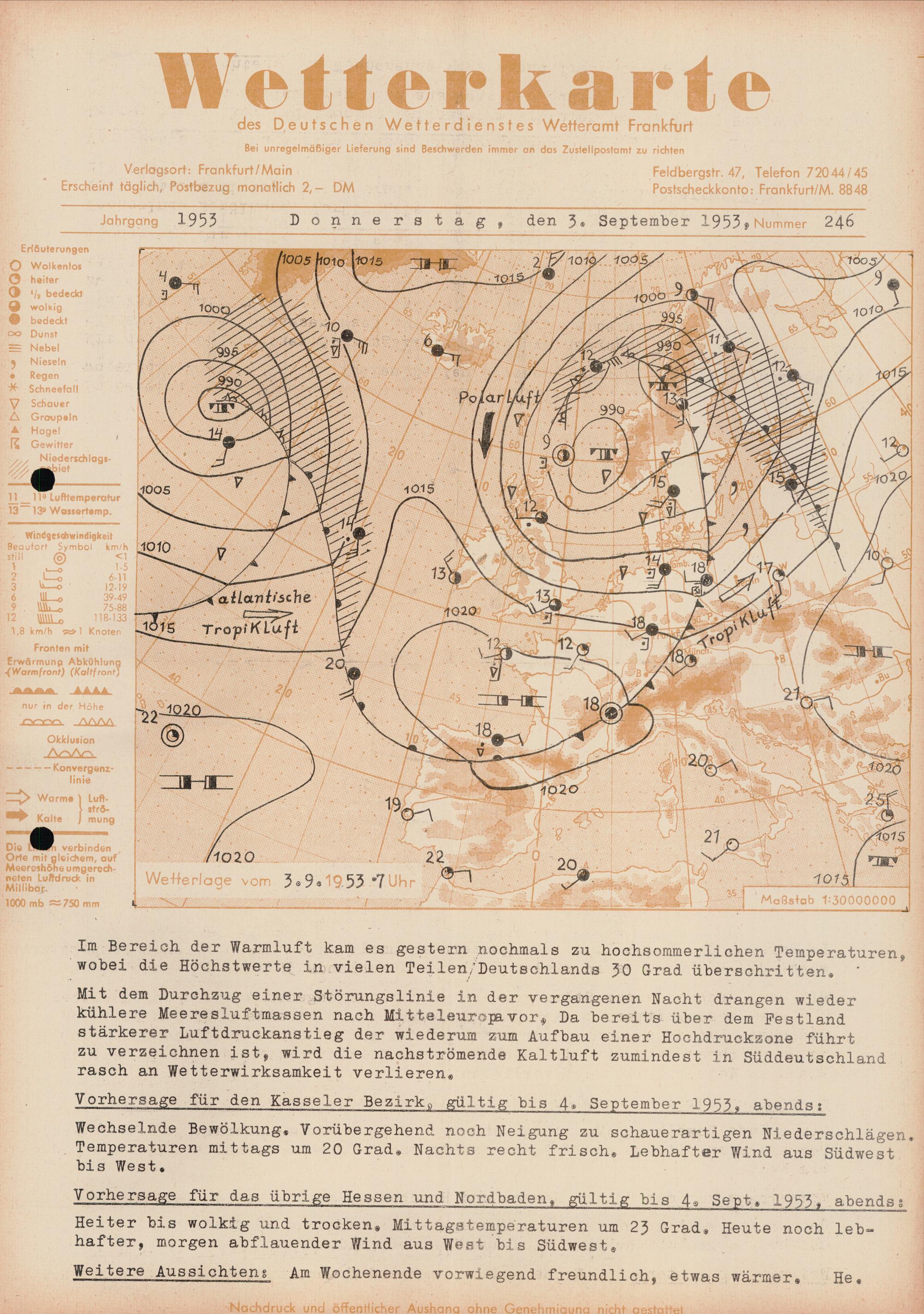 Wetterkarte des Deutschen Wetterdienstes, Wetteramt Frankfurt