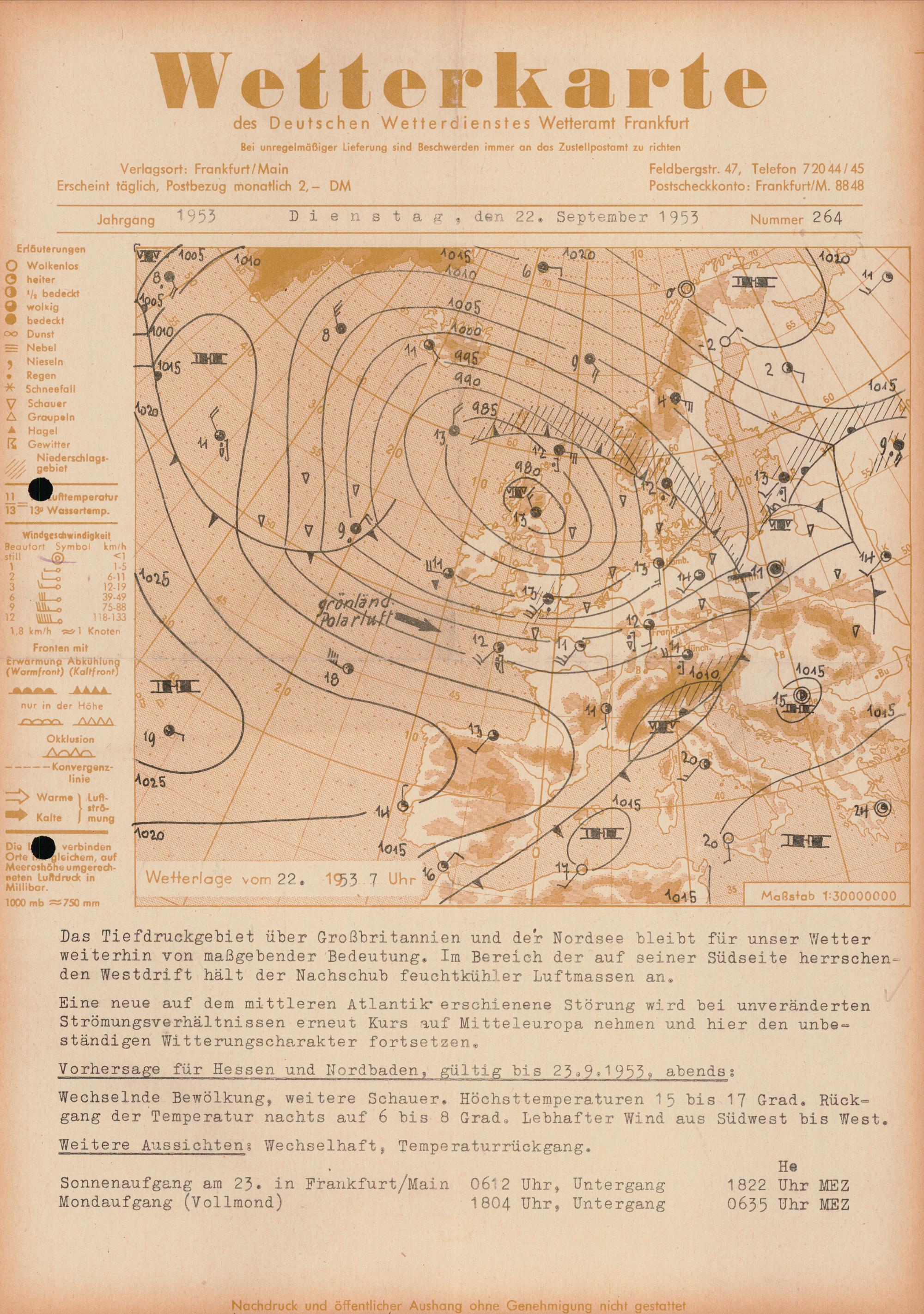 Wetterkarte des Deutschen Wetterdienstes, Wetteramt Frankfurt