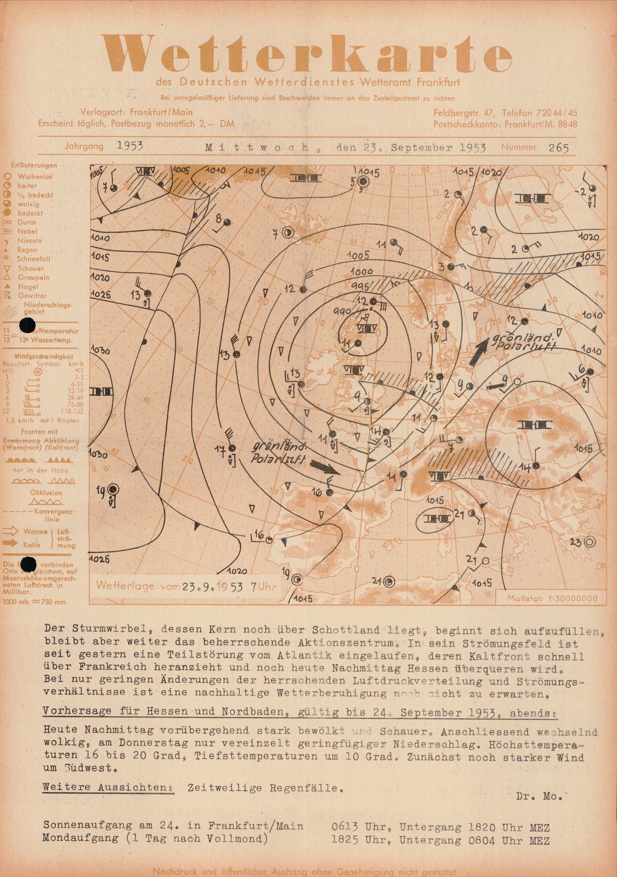 Wetterkarte des Deutschen Wetterdienstes, Wetteramt Frankfurt