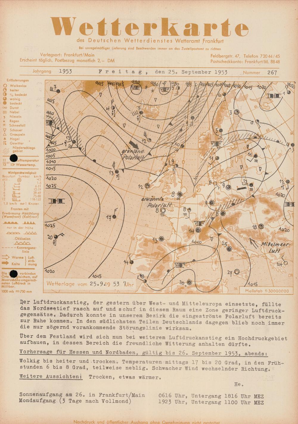 Wetterkarte des Deutschen Wetterdienstes, Wetteramt Frankfurt