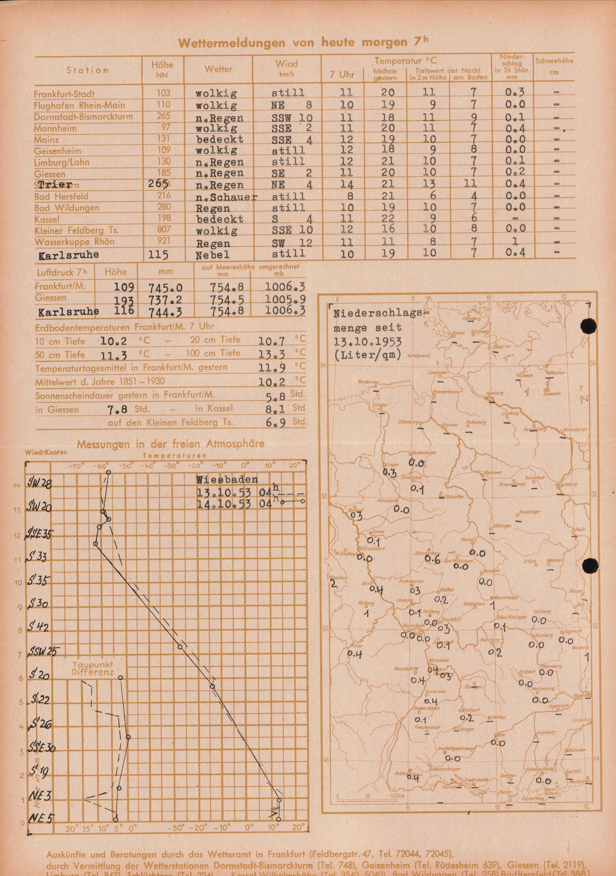 Wetterkarte des Deutschen Wetterdienstes, Wetteramt Frankfurt