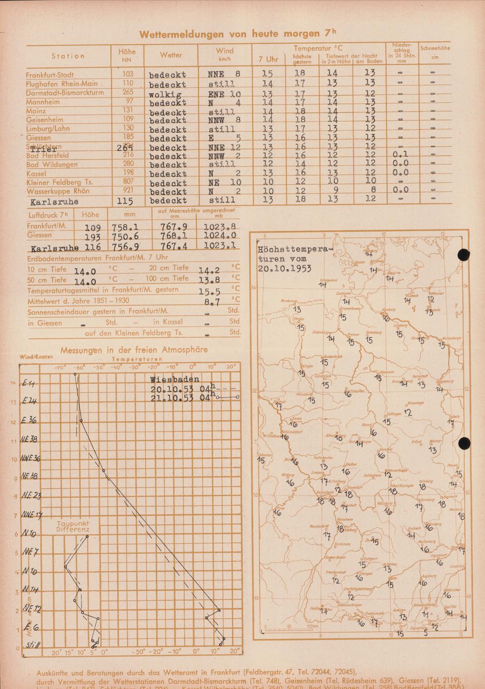 Wetterkarte des Deutschen Wetterdienstes, Wetteramt Frankfurt