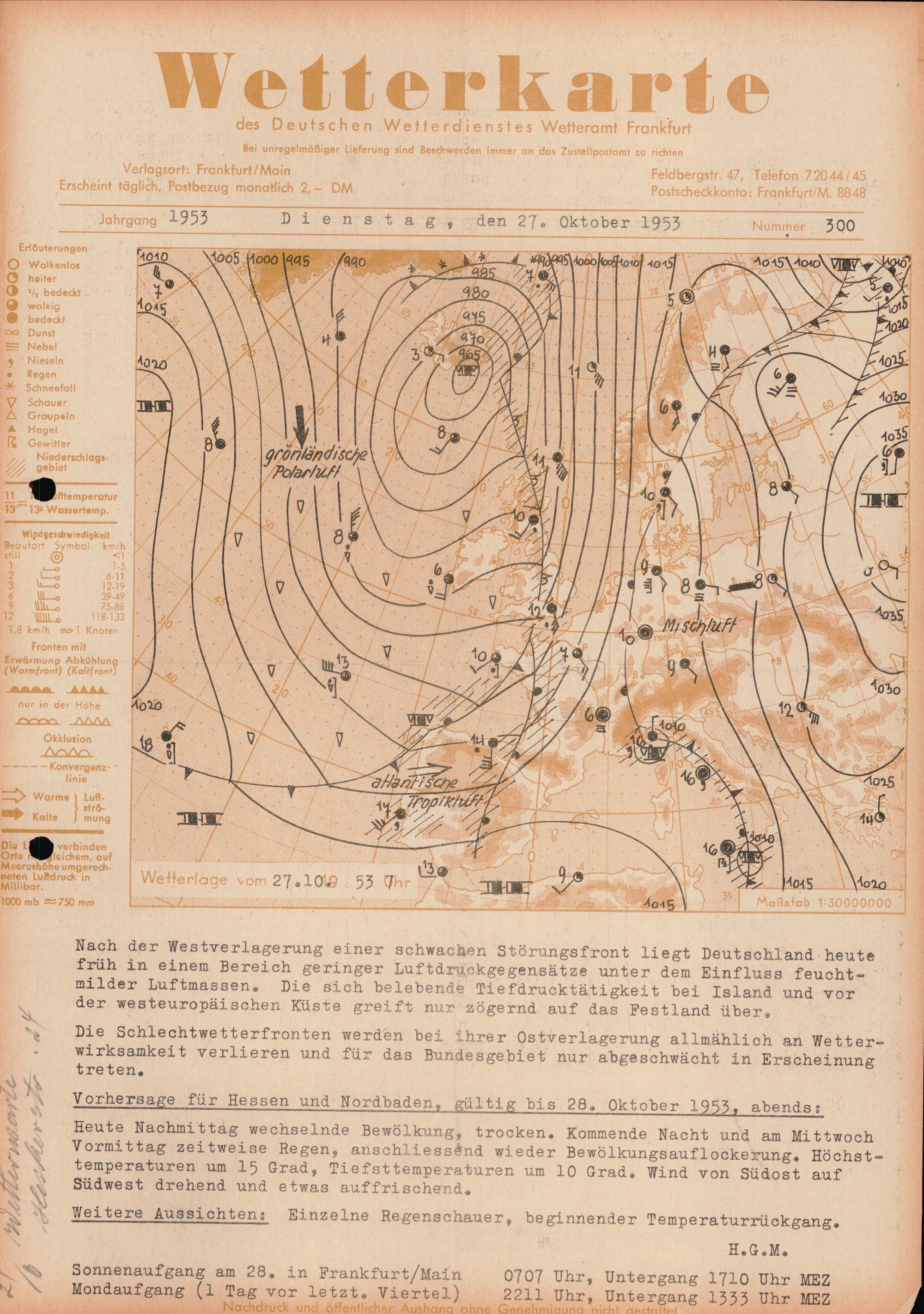 Wetterkarte des Deutschen Wetterdienstes, Wetteramt Frankfurt