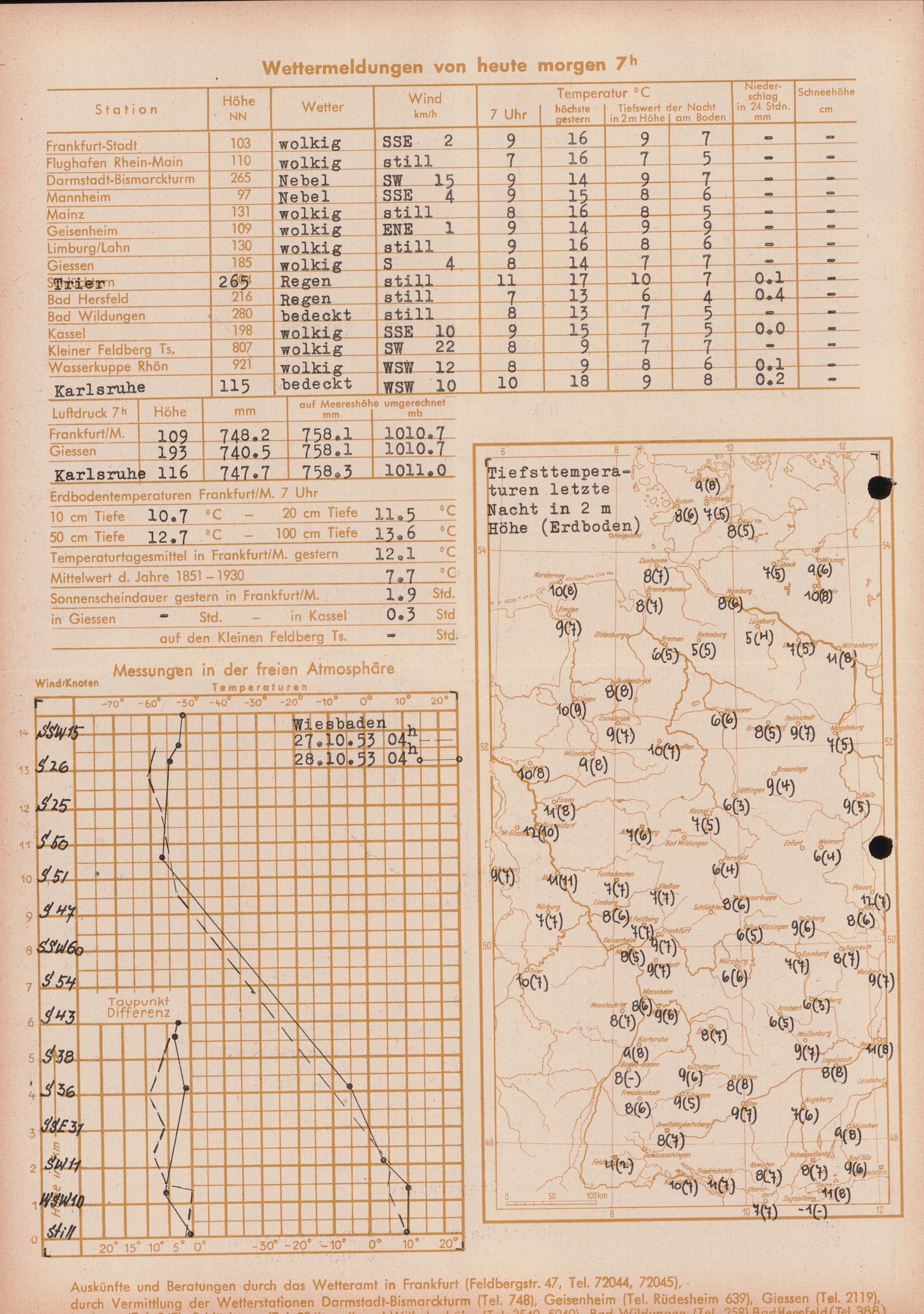 Wetterkarte des Deutschen Wetterdienstes, Wetteramt Frankfurt