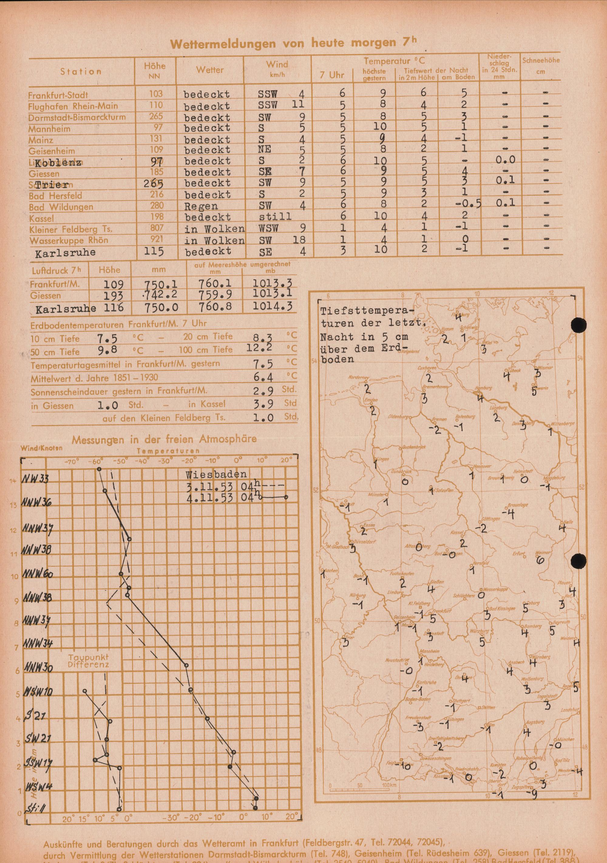 Wetterkarte des Deutschen Wetterdienstes, Wetteramt Frankfurt