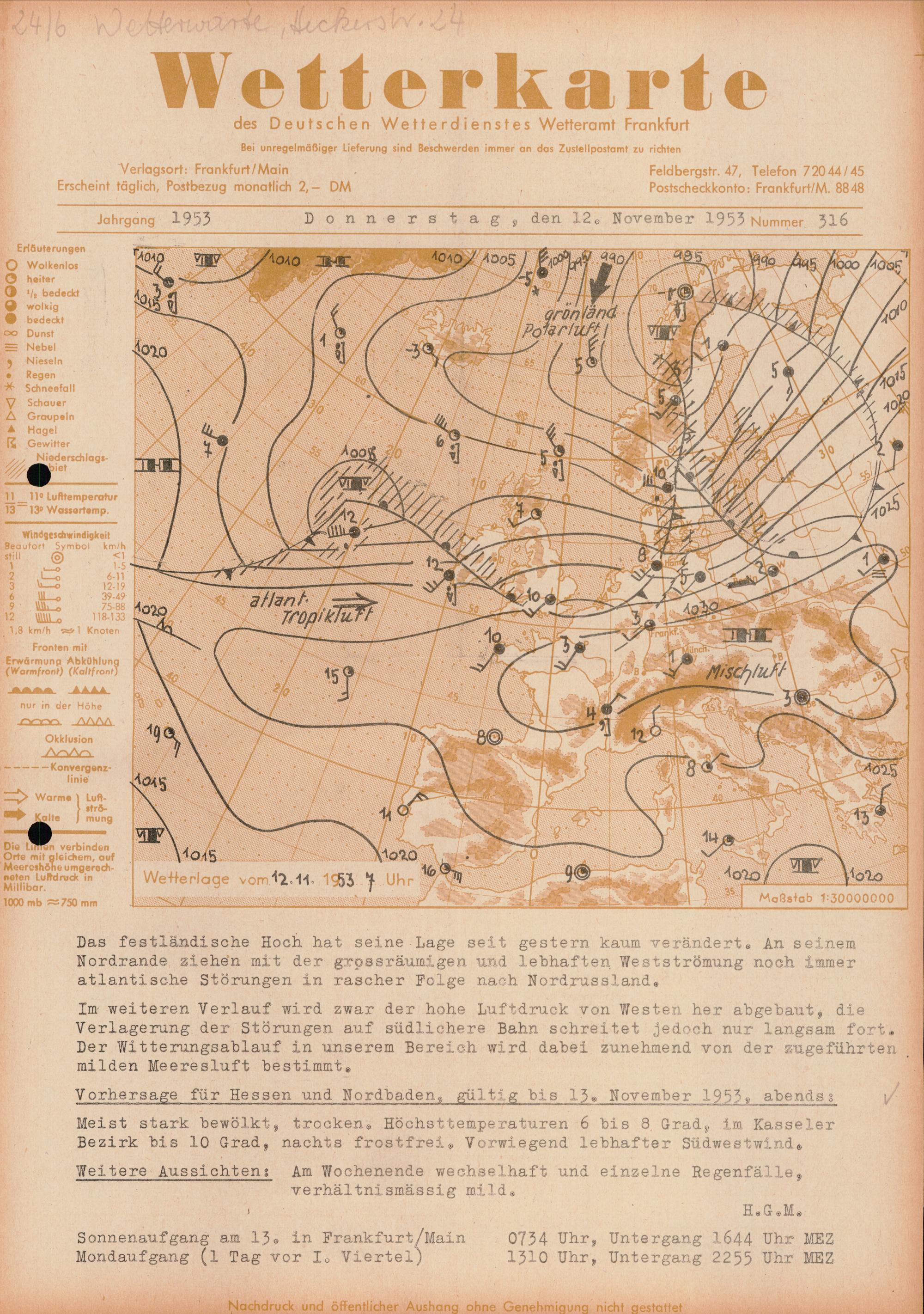 Wetterkarte des Deutschen Wetterdienstes, Wetteramt Frankfurt