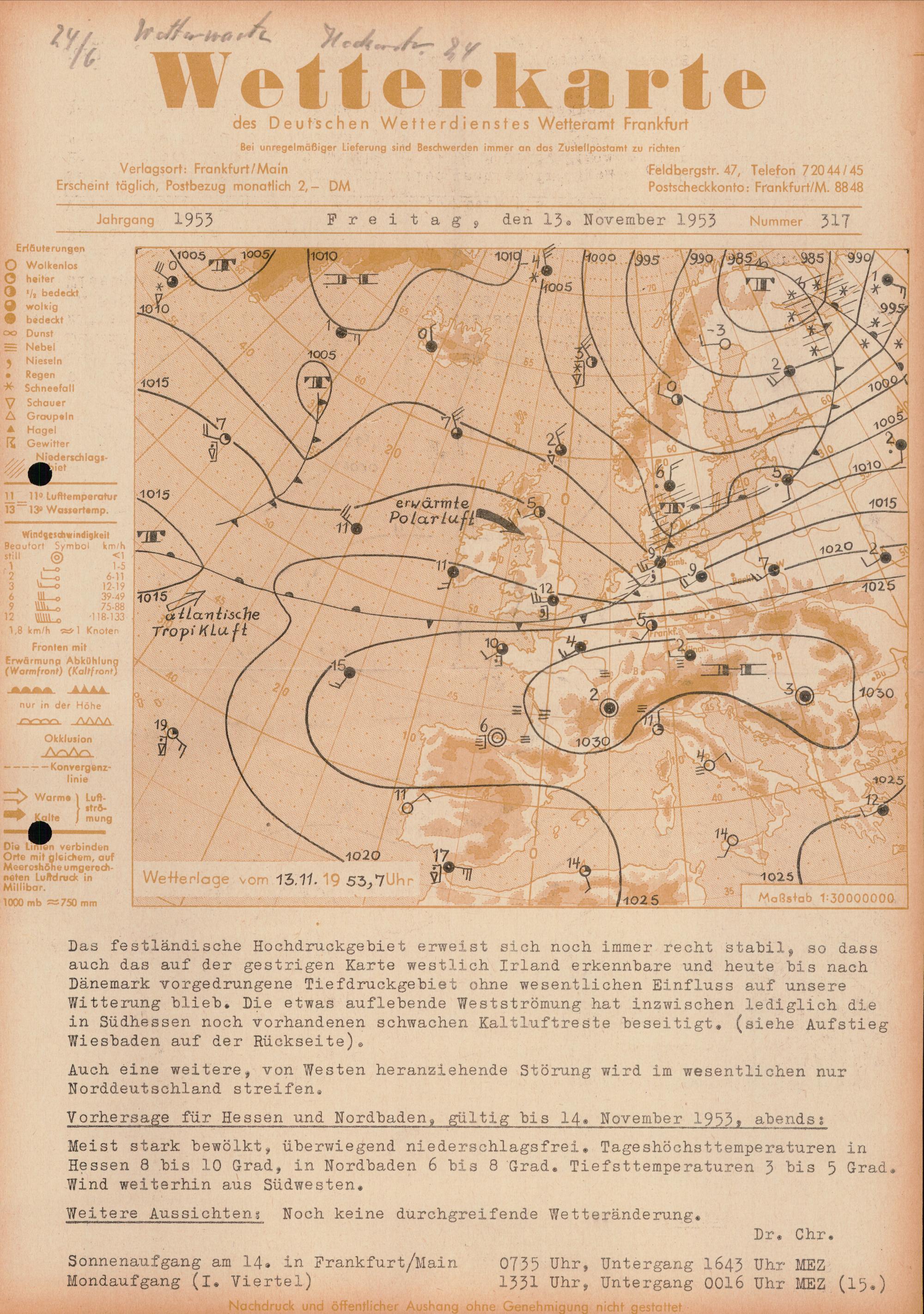 Wetterkarte des Deutschen Wetterdienstes, Wetteramt Frankfurt