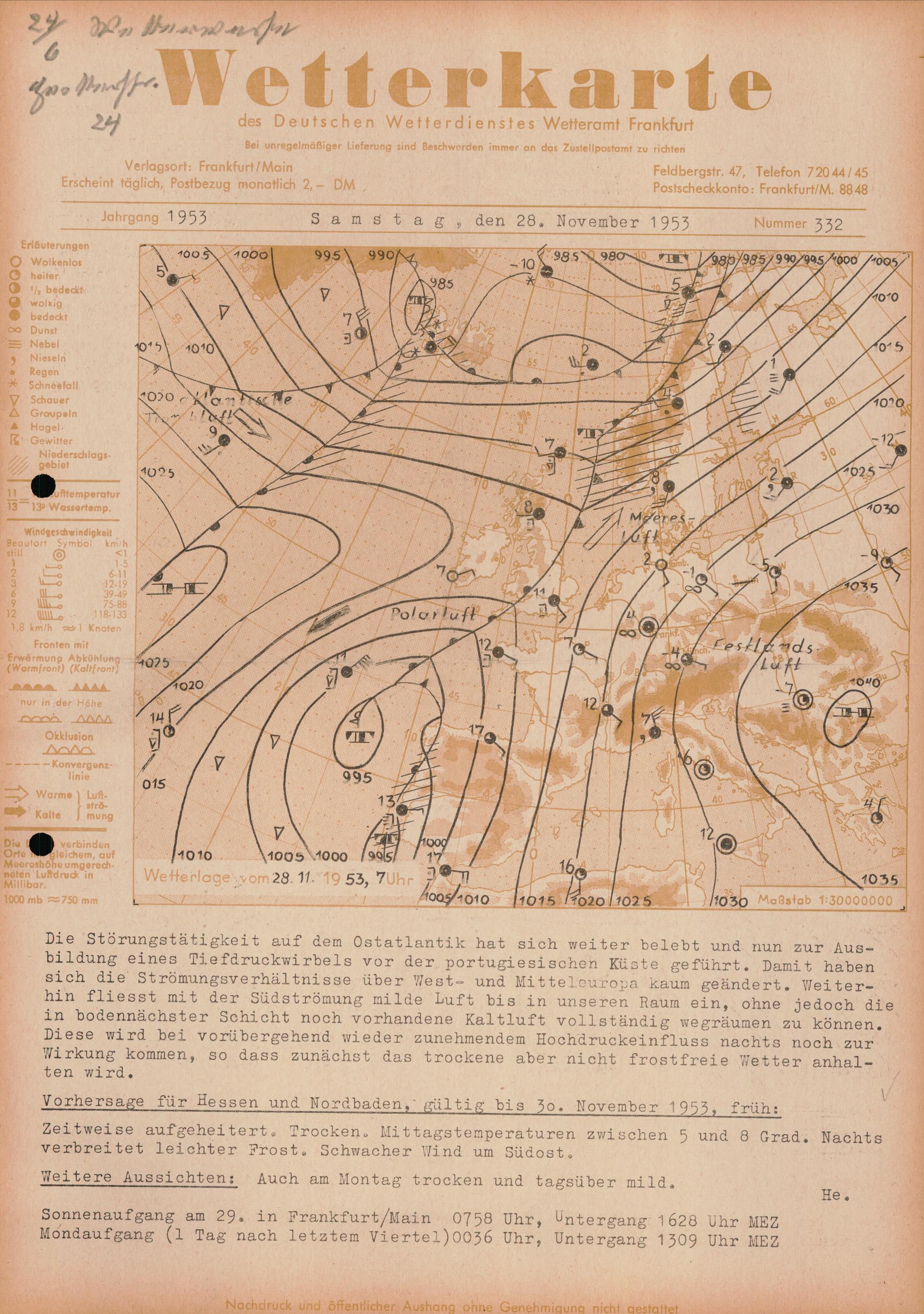 Wetterkarte des Deutschen Wetterdienstes, Wetteramt Frankfurt