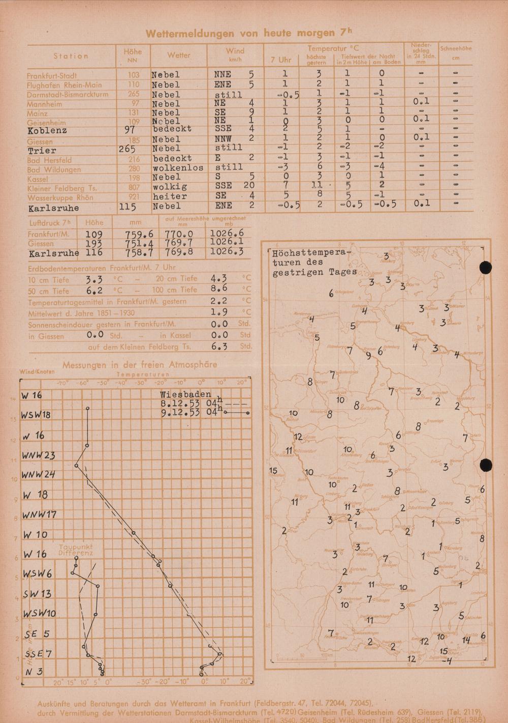 Wetterkarte des Deutschen Wetterdienstes, Wetteramt Frankfurt