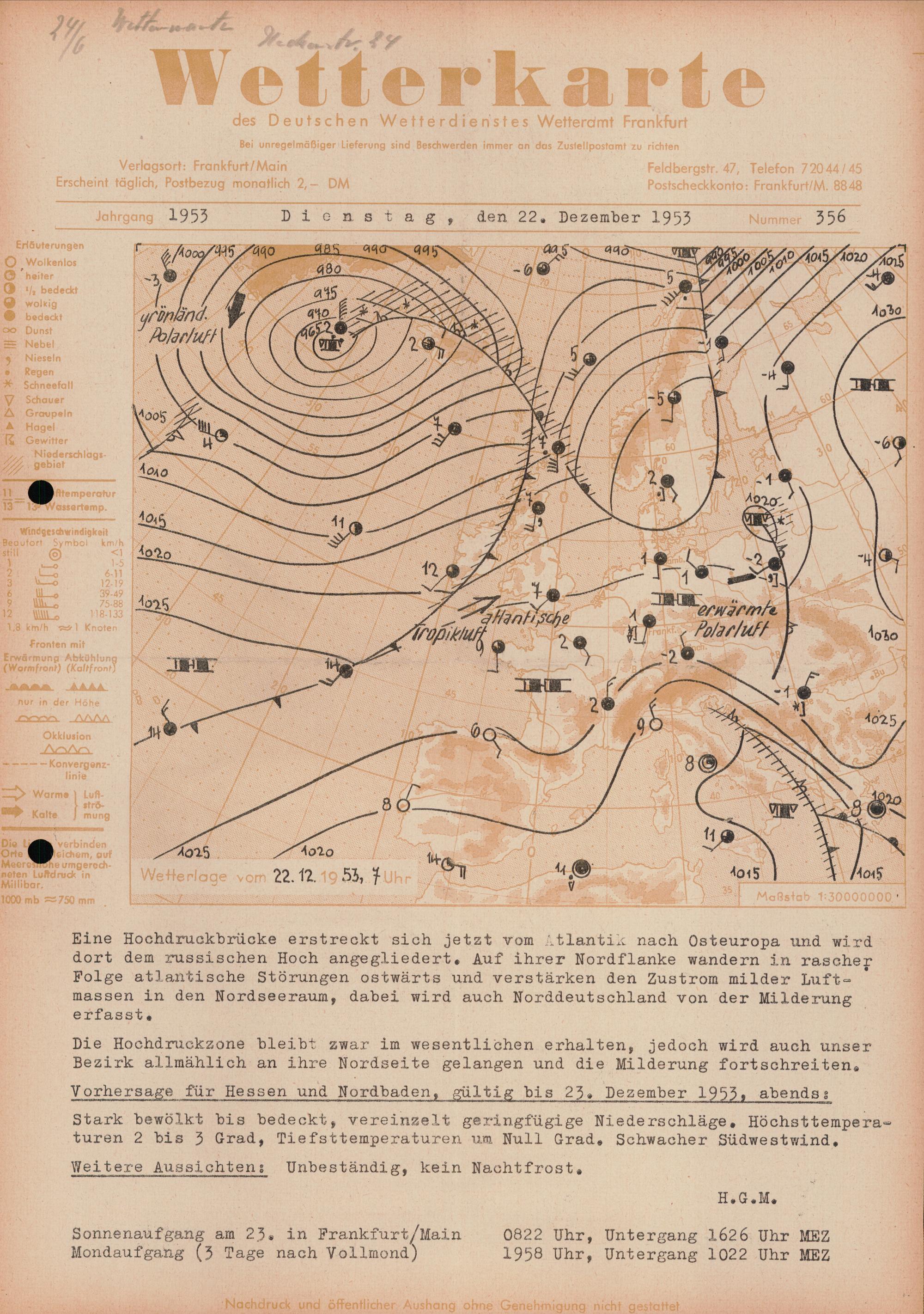 Wetterkarte des Deutschen Wetterdienstes, Wetteramt Frankfurt